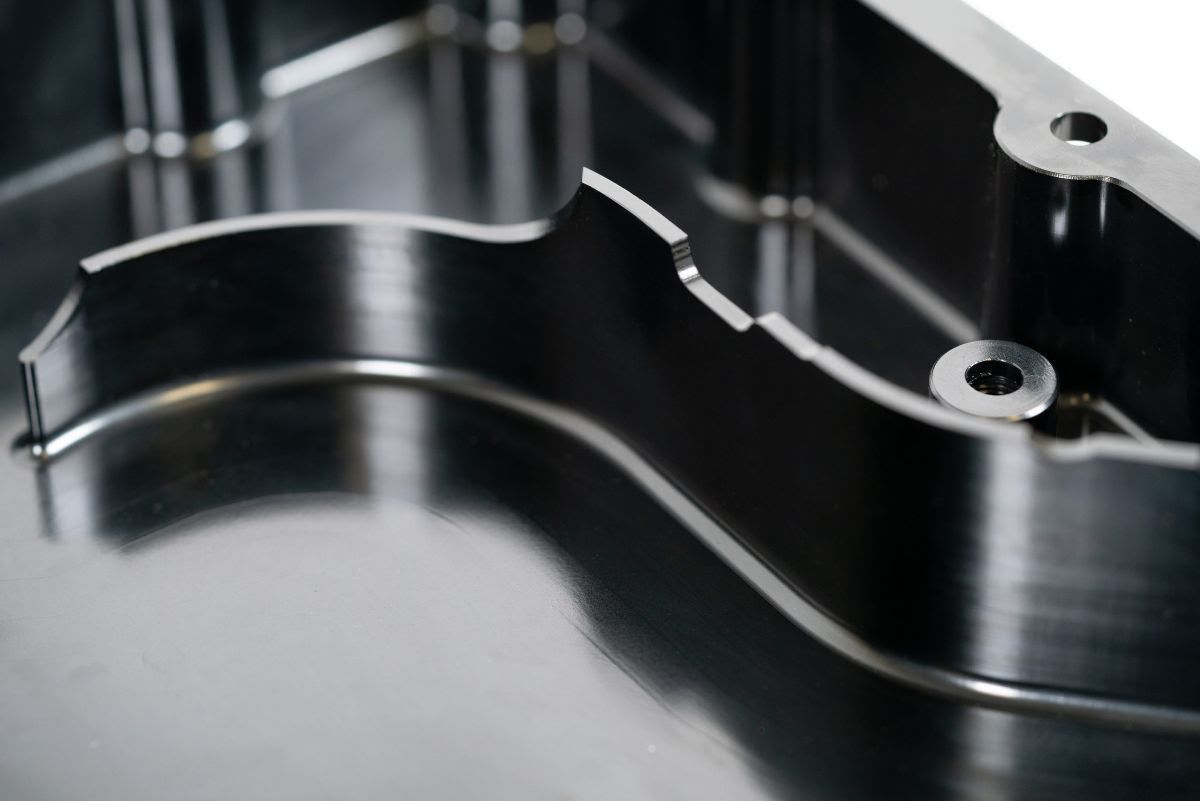 The Alpha R35 GTR Deep Transmission Pan & Pickup Relocation kit solves this trans fluid starvation problem by relocating the pickup to the back of the trans pan. When under high G's during acceleration, the oil pickup is now in the perfect location to grab the most oil possible. The high capacity pan also adds almost 2 quarts to the capacity of your transmission which further alleviates transmission fluid starvation, while at the same time increasing the overall thermal capacity of the system.