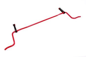 The two primary functions of sway bars are to control body roll and to determine the understeer or oversteer behavior of a vehicle. Stock sway bars have low torsional spring rates because they are manufactured from small diameter bar stock or tubing. BMR Suspension’s SB023 rear sway bar was designed by factoring in the vehicle weight, application, motion ratio, coil spring rate, and adjustability requirements. Manufactured from heavy-duty 22mm bar stock, the SB023 is cold formed to better resist torsional fatigue and retain its "memory" far longer than the hot-formed bars used by many competitors. The sway bar is CNC-formed for exact manufacturing tolerances and repeatable high quality. The SB023 attaches to your Mustang with billet aluminum end links and 88-durometer polyurethane bushings, reducing the deflection from the stock rubber bushings. These bushings are molded from 88-durometer, low-deflection, polyurethane, and are internally fluted to keep grease in the bushing. The CNC-machined, billet aluminum sway bar end links eliminate deflection. BMR Suspension designed the SB023 sway bar for street performance, autocross, and road race applications. The non-adjustable SB023 gives you a 52% increase in rate over the stock bar (depending on year and model). The rate increases gives you improved handling characteristics so you can drive harder through corners with minimal body roll. This allows for more sway bar control, which equals better handling. When performance is a must, rely on BMR Suspension! BMR Suspension’s SB023 sway bars are available in black hammertone and red powdercoat for long-lasting good looks. Installation time is about 1-2 hours. Proudly made in the U.S.A.! NOTE: BMR SB023 rear sway bar is not compatible with convertible models unless the additional OE convertible bracing is removed.