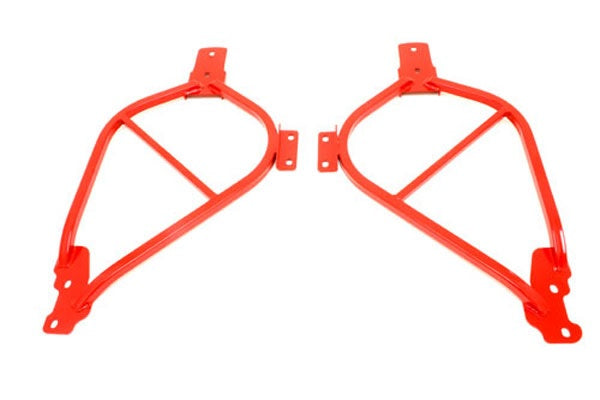 Reduce chassis flex and increase handling and performance on your Pontiac G8 or Chevy SS with three-point bolt-in sub-frame connectors from BMR Suspension. These chassis flex dramatically, even with mild amounts of torque and horsepower. BMR’s sub-frame connectors are manufactured from a mix of heavy-duty square steel tubing, with laser-cut CNC-formed 3/16-inch steel plate, and add loads of strength in all the right places. These triangulated sub-frame connectors are engineered to considerably strengthen the chassis. The SFC013s connect the front and rear sub-frames, but also tie into the rear lower control arm mounts, as well as the transmission tunnel brace. BMR has designed the SFC013 for the street performance, drag race, and handling applications. This four-point design is far superior to other subframe connectors on the market. The SFC013s solidly link the front and rear subframe, where others only connect the front subframe to the lower control arm mount. This does little to keep the rear of the chassis from flexing. Connecting both sub-frames and the lower control arm mount and transmission tunnel brace, these sub-frame connectors are the ultimate in chassis stiffening. BMR’s SFC013 subframe connectors are 100% bolt-in. This means they can be easily installed with simple hand tools, and no welding is required. When performance is a must, rely on BMR Suspension! BMR Suspension’s SFC013 are available in black hammertone and red powdercoat for long-lasting good looks. Installation time is about 1 hour. Proudly made in the U.S.A.