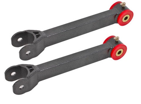 Launching harder, reducing wheel hop, and adding cornering consistency to your 2016-newer Chevrolet Camaro is easy with upper trailing arms from BMR Suspension. Stock stamped steel trailing arms with soft rubber bushings deflect under load and absorb power instead of transferring it to the tires. BMR’s polyurethane, non-adjustable trailing arms for Camaros (UTCA058) are manufactured from heavy-duty 1x1.5-inch boxed steel tubing. The open end is formed from CNC laser cut, CNC formed 3/16-inch steel plate. This design gives you a strong control arm that greatly improves performance. Greasable, 95-durometer bushings add a solid, more responsive feel over the stock rubber bushings. BMR’s bushings are internally fluted, which allows grease to evenly coat the inner sleeve. These flutes also direct grease to the outer edge of the bushing, keeping the thrust surface lubricated. This efficient lubrication ensures quiet, reliable operation over the life of the bushings. BMR Suspension designed the UTCA058 to work well in street performance, drag race, and road race applications. The stock trailing arms flex under cornering loads giving you inconsistent handling characteristics. Combine this with soft bushings that have massive amounts of deflection and you’re left with poor performance. The UTCA058’s heavy-duty construction eliminates trailing arm flex, giving you much improved repeatability on the street, starting line, or in the corners. BMR’s polyurethane bushings are designed to be compliant enough to give you a comfortable ride and absorb NVH, while remaining firm enough to stand up to high loads of any performance environment. The bushings easily handle the high compression loads of hard launches and hard acceleration, yet offer plenty of articulation for great handling. These are the perfect upgrade for the enthusiast looking to improve performance at an affordable price, while maintaining acceptable NVH levels and ride quality. When performance is a must, rely on BMR Suspension! BMR Suspension’s UTCA058 non-adjustable polyurethane upper trailing arms are available in red and black hammertone powdercoat for long-lasting good looks. Installation time is about 2 hour. Proudly made in the U.S.A.