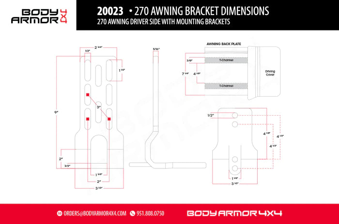 Body Armor 4x4 Sky Ridge 270 Awning Driver Side w/ Mounting Brackets