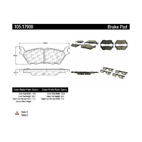 CENTRIC POSI-QUIET CERAMIC BRAKE PADS W/HARDWARE – REAR, 105.17900