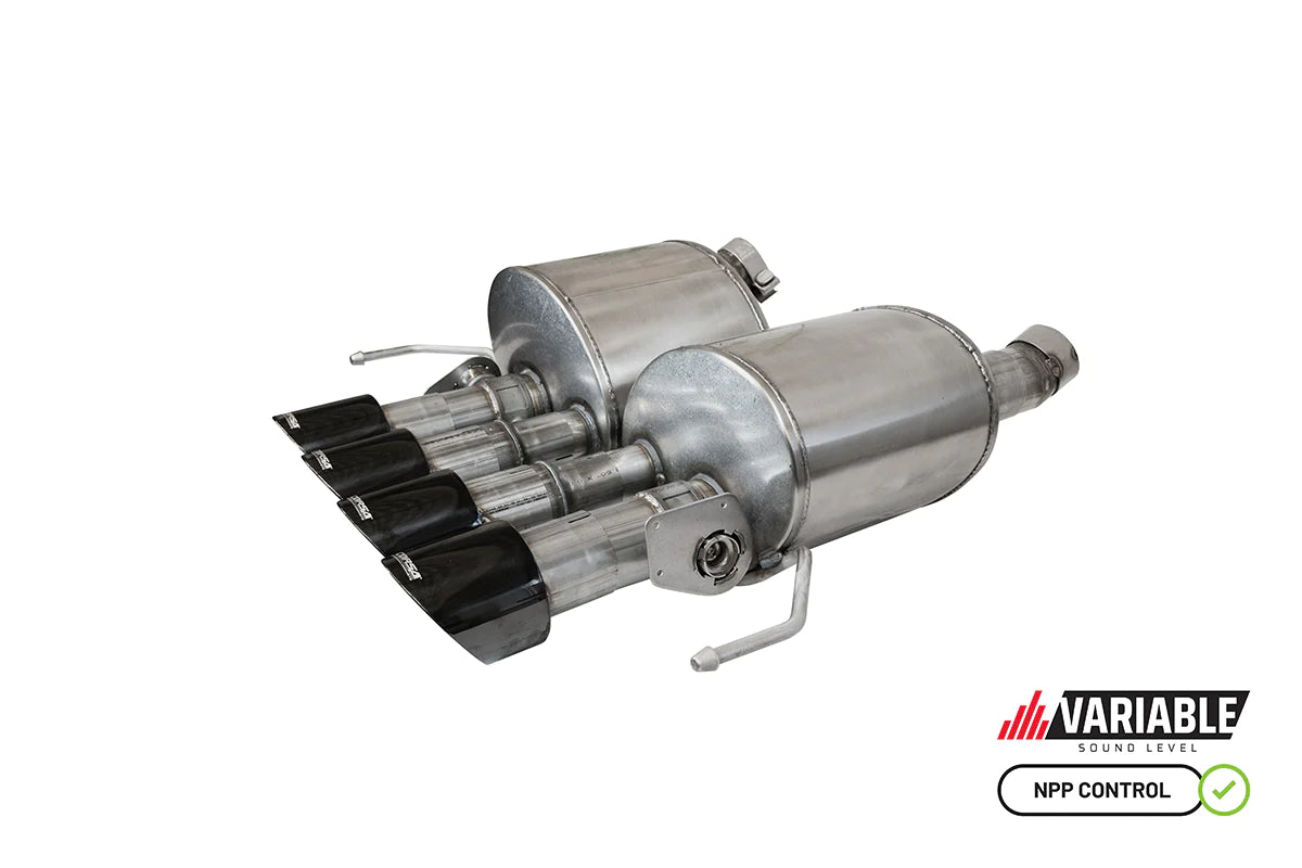 For the first time on a Corvette, the C7 CORSA Performance exhaust System is available with an integrated NPP valve and RSC Technology that allows the driver to take advantage of the C7's multiple driving modes and personalities. CORSA's new "Active Valve" C7 exhaust allows the driver to take advantage of over 17 decibels of volume change between "Touring" and "Track" modes while maintaining a No Drone Driving Experience. This is the ultimate C7 valved exhaust system.