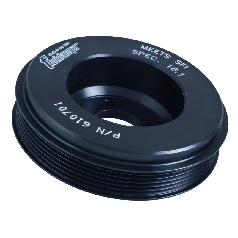 Protect your engine. Modifications can compromise your stock harmonic balancer. Install a Fluidampr performance damper early for best durability. Superior viscous damper design controls harmful torsional vibration across the entire rpm range. Reduce wear on engine components. Reduce risk of crankshaft failure. Improve timing. Unleash lost torque and horsepower. Precision CNC machined and balanced high-grade steel components. Corrosion resistant black zinc finish with engraved timing marks. No maintenance required. Trusted by leading engine builders worldwide. SFI 18.1 certified. Made in USA.
