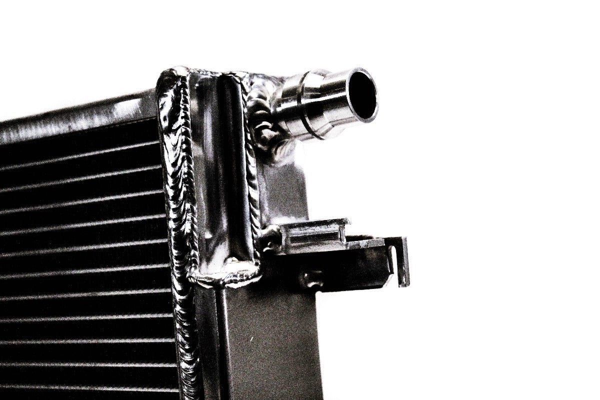 Constructed entirely from aluminum and featuring high-density fin cores, precision CNC-machined fittings, and full hand TIG-welds, this heat exchanger delivers peak cooling efficiency while maintaining a direct bolt-on installation process.