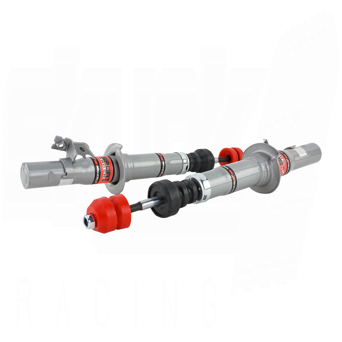 Each Sport Shock features a shortened dual-tube body with a hardened, super-finished chrome-plated shaft and precision valving optimized for use with Skunk2 Lowering Springs or Adjustable Sleeve Coilovers. The reduced shaft stroke ensures full suspension travel even on lowered vehicles, while polyurethane top hat bushings enhance feedback and steering response.
