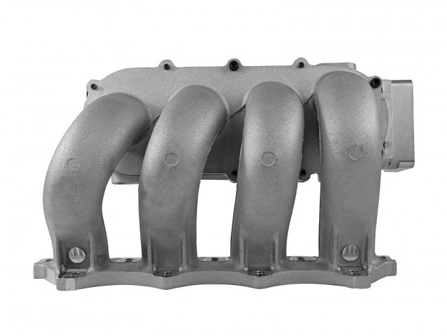 Skunk2 Racing Ultra Street Intake Manifolds are cast-aluminum, manufactured from high-grade 356 aluminum alloy for strength and lightweight. Each manifold is CNC-machined for a precise fit, and individually inspected for quality assurance. The Ultra Series Street manifold features a generous 68mm throttle body opening and is constructed with thick walls at entry, minimizing concerns of breakthrough when port matching. Intense planning and design went into the plenum (1.8L plenum volume) to distribute even airflow to all four cylinders under dynamic load conditions. Placement and design of the velocity stacks were rigorously flow tested to ensure maximum delivery of air to the cylinder. Large velocity stack raised bell mouth entries lead to 10.00” long intake runners with smooth transitions allowing the Ultra Street Intake Manifold to outflow all other production intake manifolds.