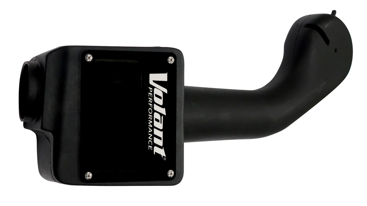Volant air intake systems utilize a high-velocity venturi filter adapter which provides a smooth transition through the MAF sensor into the intake tube for a much needed airflow improvement over the factory rubber tubing and resonator box. Volant's Cool Air box is larger than the factory unit and incorporates a larger opening to collect a higher volume of colder ambient air.