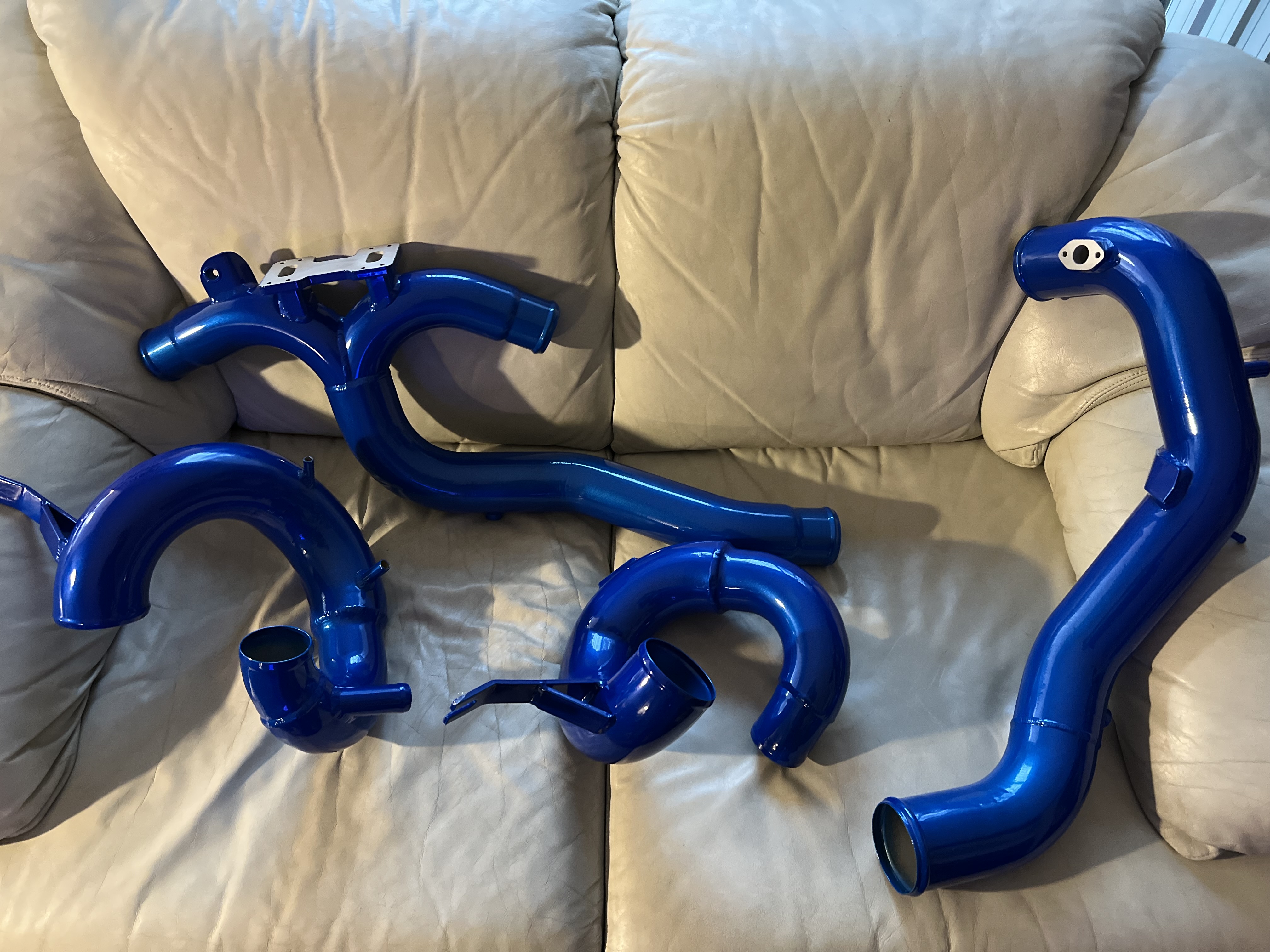 Smooth transitions in the mandrel-bent aluminum pipes decrease turbulence and minimize pressure loss, increasing horsepower and torque. The charge pipe kit provides a smooth transition between the turbo and the engine for lower operating temperatures and increased power. This kit includes high-quality, stainless-steel, spring-loaded T-bolt clamps and heavy-duty, 5-ply, polyester reinforced silicone couplings. This charge pipe kit features factory style billet aluminum quick-connect adapter with an o-ring to ensure a leak-free fit while maintaining superior strength and durability. Finished in wrinkle black powder coating with a unique laser-etched aFe power logo for a custom look.