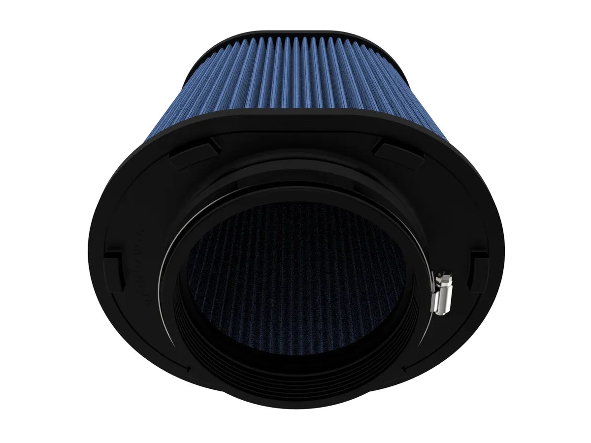 This filter features five layers of pre-oiled cotton gauze media to provide maximum performance. Its progressive layering allows the filter to flow at high levels even when dirty, while its inverted top makes for more filter surface area, resulting in longer service intervals. This media is perfect for street and/or track use. Pro 5R filters are easily recharged with aFe's POWER CLEANER and blue air filter oil. aFe POWER performance air filters use a rounded, evenly spaced pleat design which allows for more usable filter surface area, providing increased flow and greater dust holding capacity. This aFe POWER performance air filter is constructed with a polyurethane base and top. Unlike other materials that degrade after repeated heat cycles in an engine bay, polyurethane maintains its original molded shape. Utilizing the filter's retention groove, the filter locks into most Stage-2 housings with zero hardware. This simple design allows for easy filter maintenance and replacement. Fits: aFe POWER intakes 57-10011D, 57-10011R, 57-10010D, 57-10010R.