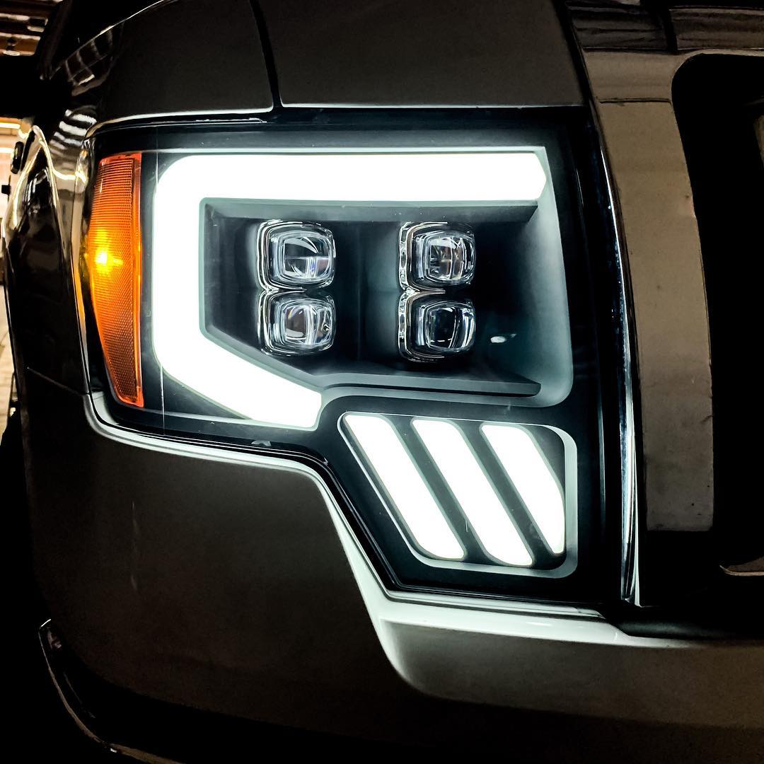 AlphaRex 09-14 Ford F-150 NOVA LED Proj Headlights Plank Style Gloss Black w/Activ Light/Seq Signal
