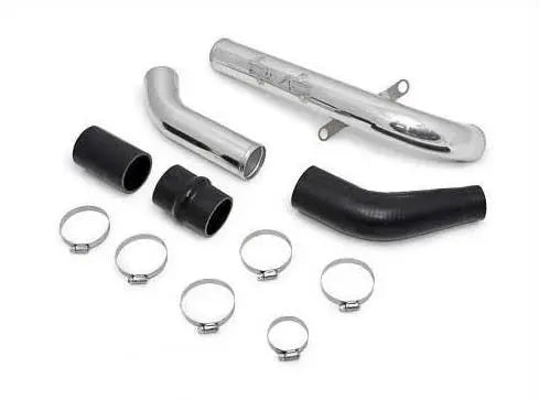 The AMS EVO X Upper Intercooler Pipe (UICP) is a direct replacement for your factory upper intercooler pipe. Made from lightweight 2.5" mandrel bent aluminum tubing this pipe includes features such as a smooth, non-turbulent 2" - 2.5" transition for maximum performance. The pipe ends are bead rolled and the assembly is mounted to the core support (in the factory location) to help prevent couplers from popping off under boost. All the factory couplers are replaced with quality 4-ply silicone pieces which can endure 50 + psi of boost! We also utilize a silicone “hump hose" to prevent torn couplers caused by engine movement. Our UICP is professionally TIG welded in house by our master fabricators and is available polished or black wrinkle powder coated. By simply installing this Upper Intercooler Pipe you can expect to see 5 awhp peak and 10+ awhp gains in the midrange over stock without even re-tuning the ECU!