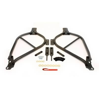 Reduce chassis flex and increase handling and performance on your Pontiac G8 or Chevy SS with three-point bolt-in sub-frame connectors from BMR Suspension. These chassis flex dramatically, even with mild amounts of torque and horsepower. BMR’s sub-frame connectors are manufactured from a mix of heavy-duty square steel tubing, with laser-cut CNC-formed 3/16-inch steel plate, and add loads of strength in all the right places. These triangulated sub-frame connectors are engineered to considerably strengthen the chassis. The SFC013s connect the front and rear sub-frames, but also tie into the rear lower control arm mounts, as well as the transmission tunnel brace. BMR has designed the SFC013 for the street performance, drag race, and handling applications. This four-point design is far superior to other subframe connectors on the market. The SFC013s solidly link the front and rear subframe, where others only connect the front subframe to the lower control arm mount. This does little to keep the rear of the chassis from flexing. Connecting both sub-frames and the lower control arm mount and transmission tunnel brace, these sub-frame connectors are the ultimate in chassis stiffening. BMR’s SFC013 subframe connectors are 100% bolt-in. This means they can be easily installed with simple hand tools, and no welding is required. When performance is a must, rely on BMR Suspension! BMR Suspension’s SFC013 are available in black hammertone and red powdercoat for long-lasting good looks. Installation time is about 1 hour. Proudly made in the U.S.A.