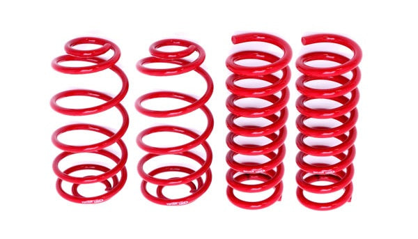 There is nothing like the aggressive look of a car with the right stance! Over time, stock springs sag, get rusty, and simply wear out. BMR Suspension believes the right springs go beyond looks—your GM A-body needs to perform, too! All BMR springs are manufactured from chrome silicon high-tensile spring wire, and are cold wound on a CNC coiling machine. The CNC coiling head can adjust the spring diameter in real time to ensure that every spring is exactly the same. This guarantees that your right spring matches your left spring. Every BMR spring is compressed solid at the factory, not once, but twice. This gives the spring its permanent set, and guarantees no sag. BMR springs are stress-relieved at 750 degrees F, ensuring most stresses induced during the winding process are eliminated. All springs are then shot-peened to eliminate residual surface stresses. Many spring manufacturers skip this step, but BMR insists on this operation as part of our spring manufacturing process. Every spring is computer tested as the last step—every spring, not just a sample from each batch. Each spring is loaded in the spring tester at the factory, then compressed and the CNC load cell measures the force for a variety of spring lengths. This allows BMR to offer a LIFETIME WARRANTY against spring sag. Blending aesthetics and performance, BMR has designed the SP030 for the street performance crowd who want to use their cars in a variety of application. These springs will drop your 1967-1972 GM A-body 1-inch, and feature a fine-tuned spring rate to give you great handling and a smooth ride. The spring rate offers plenty of support, keeping the body flat and level in the corners, while remaining soft enough for a comfortable ride on any road. When performance and looks are a must, rely on BMR Suspension! BMR Suspension’s SP030 lowering springs are available in red powdercoat for long-lasting good looks. Installation time is about 2-3 hours. Proudly made in the U.S.A.