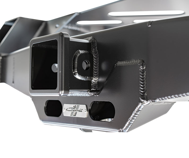The Carli trophy hitch is the ultimate solution to the customer wanting to carry a matching spare tire in their factory location with no sacrifices.