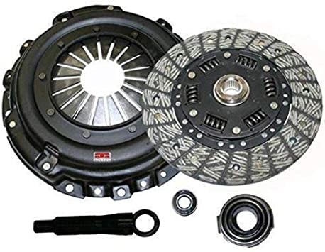 This assembly provides up to 80% increase in torque capacity and is properly suited for aggressive street use and moderate track use. The Brass Plus material with its alloy backing matched to a Performance pressure plate will provide smooth engagement and extended life. 500 mile break-in highly recommended with this set-up. 300 mile break-in REQUIRED with this set-up. (Some kits may not be supplied with all pieces pictured. Please verify with Competition Clutch before ordering).