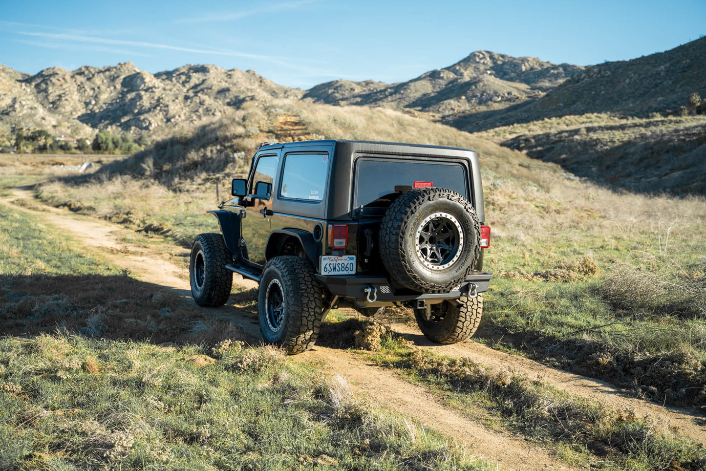 Our Made to Overland Wrangler JK Rear Bumper was designed for both the rock crawler and the overlander. This full-width Jeep bumper fits up to a 37-inch spare tire with a max of 4.5-inches of backspacing on the factory carrier. Alternatively, the optional MTO Tire Carrier swing gate provides additional utility for your spare tire management by being able to swing free of the tailgate.