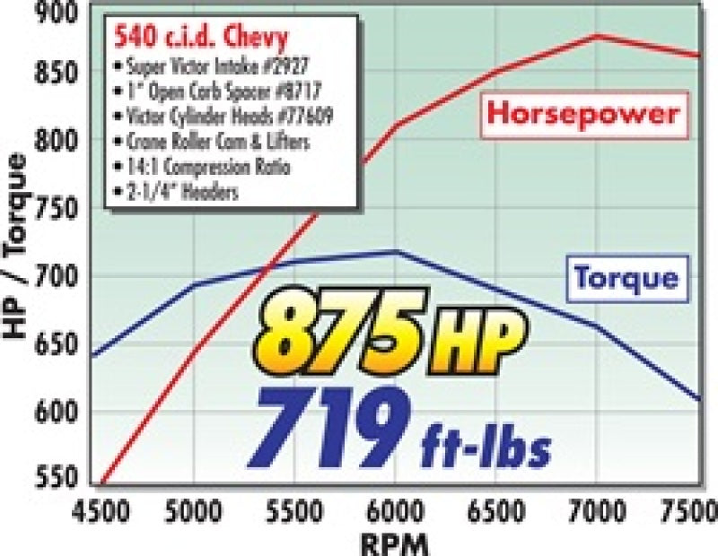 Designed for Chevy big-blocks with rectangular port cylinder heads, this single-plane manifold is ideal for 500+ cubic-inches or any big-block drag race engine with high air flow requirements. In dyno testing, Super Victor #2927 outperformed the competition out-of-the-box with just a port match and minor blending of critical surfaces. Super Victor Tall-Deck #2916 can be used on tall-deck (10.2") blocks without manifold spacers and accepts standard height distributors. Carburetor Recommendations: Use appropriate 4500 Series racing carburetor. Throttle Body Recommendations: Use #3879 4500 style or #3814 EFI elbow and #3869 90mm throttle body. Installation Notes: Recommended intake gasket: Edelbrock #7208, Fel-Pro #1275. Standard-deck manifold height: A-6.20", B-6.20", Tall-deck Manifold height: A-6.95", B-6.95".