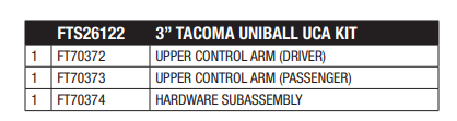 FTS26122 3” TACOMA UNIBALL UCA KIT