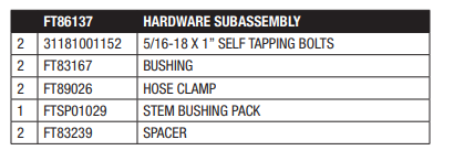 1 FT86137 HARDWARE & BUSHING KIT 137