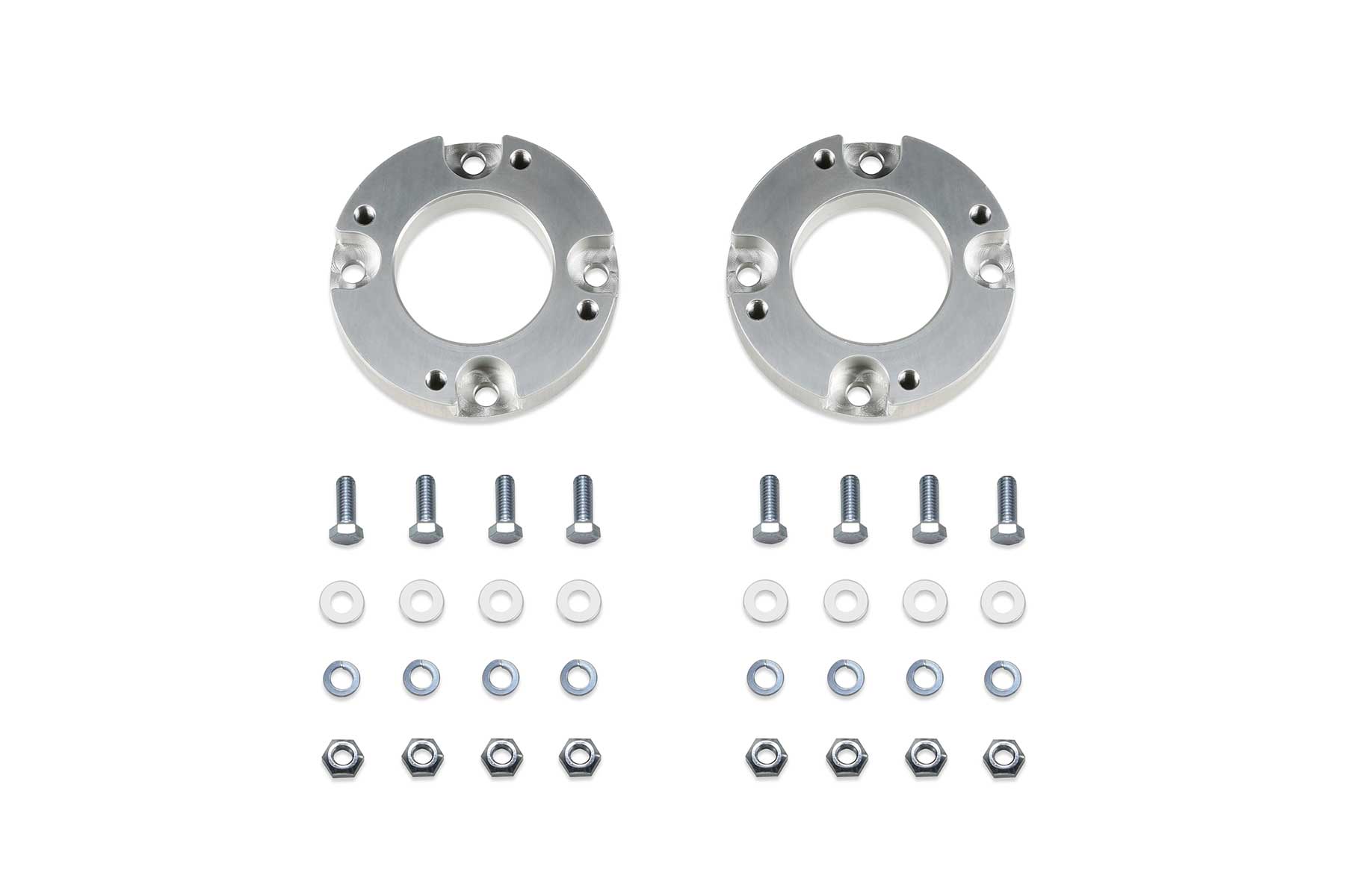 Fabtech’s Leveling System for the 2024 Toyota Tacoma features CNC machined aluminum front billet spacers that work in conjunction with the factory Coilover shock assemblies. They are designed to bolt in without the disassembly of the factory coilover shocks for a fast installation.