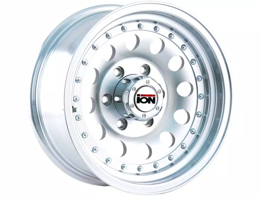 The wheel is covered in a machined finish that is offset by the bolted accents the outer edge of the face of the wheel. The center cap is adorned with the Ion Alloy logo to complete the look.