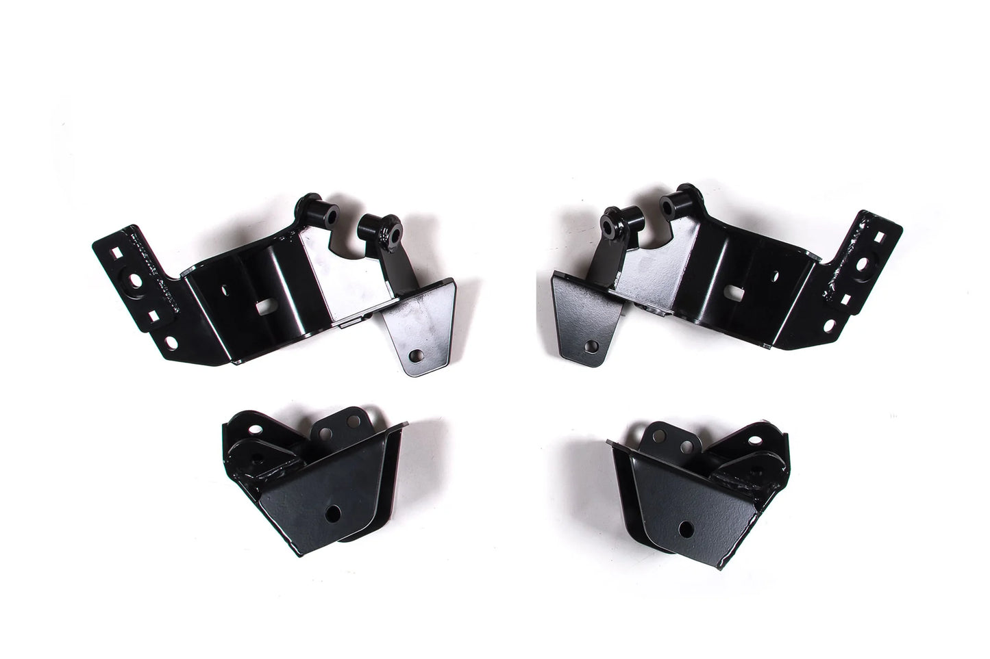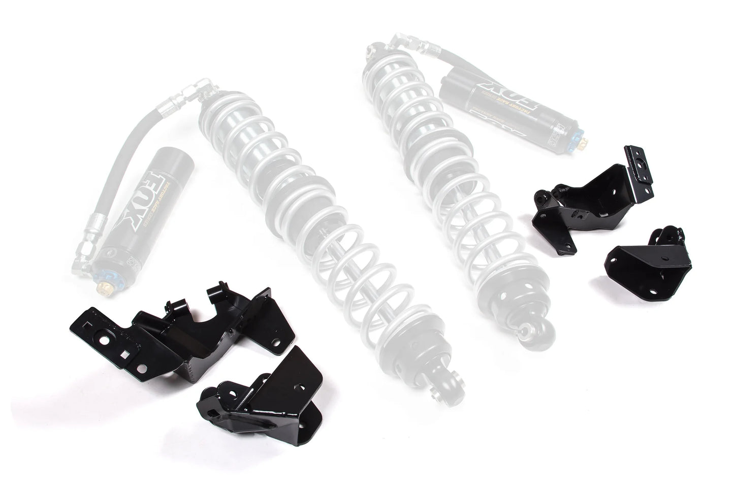 Designed to complement the JKS front Coil-over conversion kit for Jeep Wrangler JK, this rear system is just as strong, comprehensive and easy to install. The rear position kit accepts FOX 2.5" 10" travel Coil-overs -- including provisions to mount remote fluid reservoirs. In addition to the benefits of high-performance FOX shock valving, Coil-overs facilitate easy ride height adjustments and coil spring swaps for rate changes. The no-weld solution requires some cutting and drilling as described in the detailed instructions. Kit is designed as an upgrade for lifted JKs. Additional mods are necessary to correct suspension/driveline geometry on stock height JKs. Requires permanent cutting of the factory shock mounts. Includes powder coated driver's side and passenger brackets. Accepts FOX 2.5" 10" travel DSC Factory Race Coil-overs, PN FOX88406177 recommended. Compare with other brands' Coil-over conversion kits that only accept 2" diameter Coil-overs.