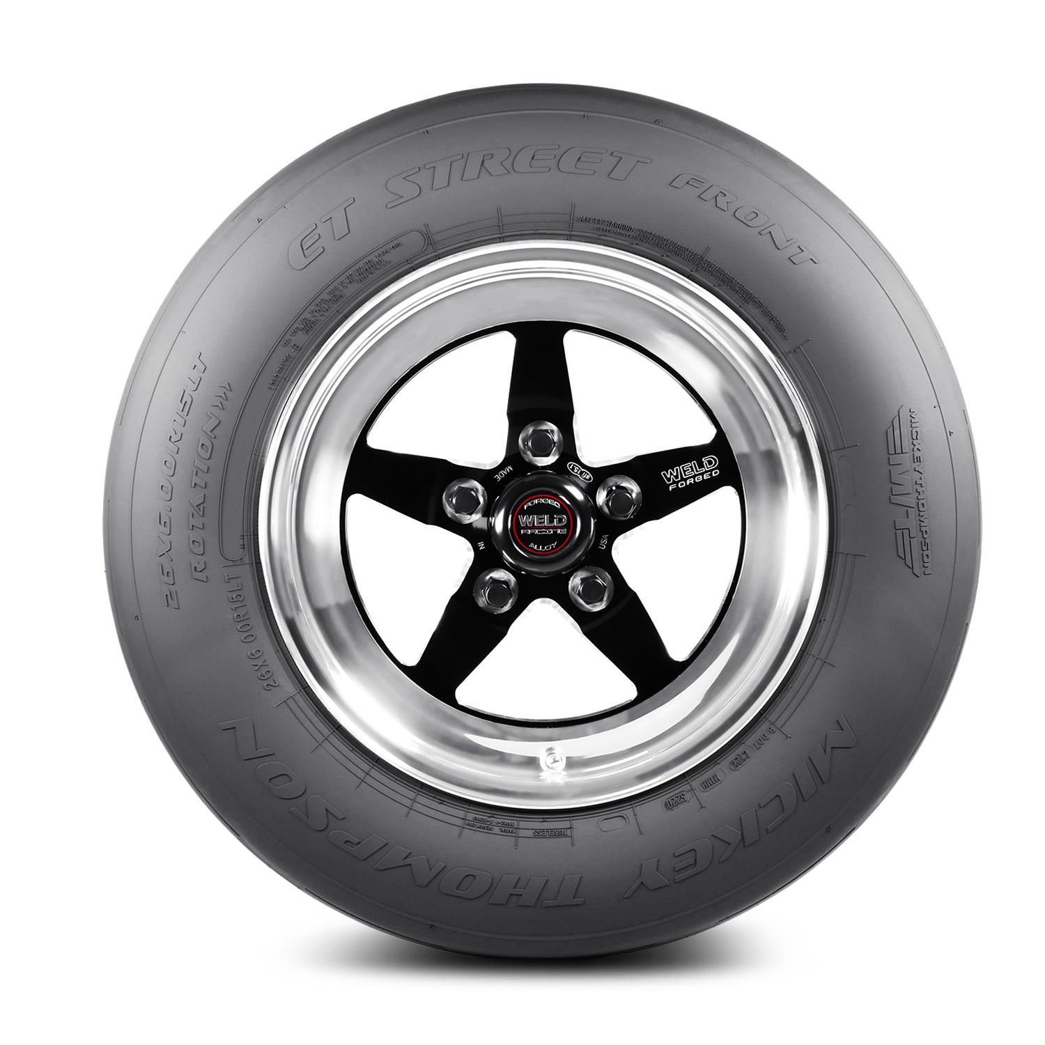 The Mickey Thompson ET Street® Front is a lightweight, radial construction tire designed to complement the ET Street drag radial lineup. Engineered to reduce rolling resistance and provide improved steering feel, it is a perfect match for both early and late-model muscle cars such as Mustangs, Camaros, Corvettes, as well as hot rods and street rods. With D.O.T. approval for street use, this front tire is optimized to help unlock quicker ETs when paired with ET Street R, ET Street S/S, or ET Street Radial Pro rear tires.