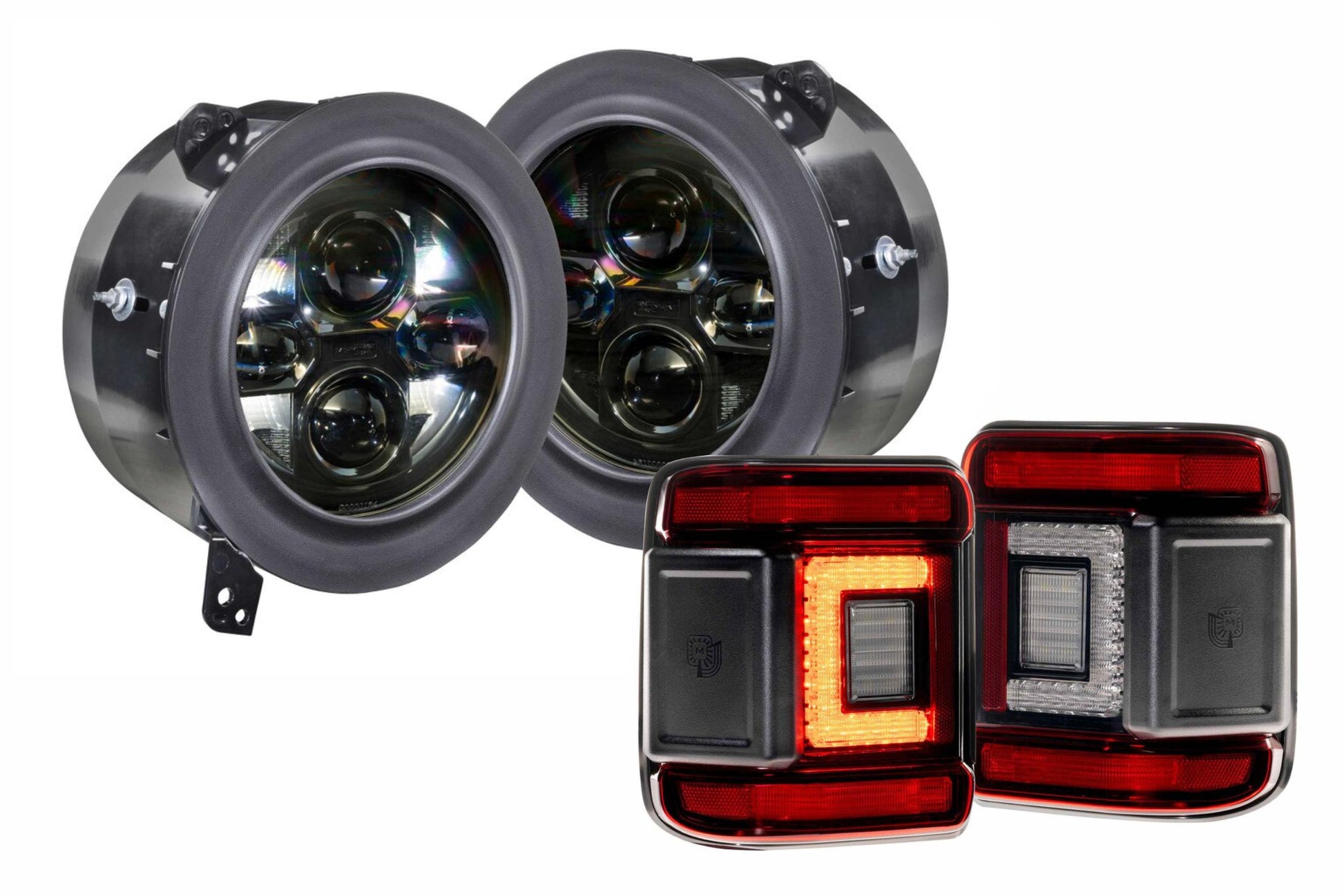 Headlights: Wrangler JL and JT: While every biz in the aftermarket has a catalog full of products for the new Wranglers, including headlights, somehow no brand has yet to deliver anything worthy of replacing the OEM headlights. When it comes to style, performance, features, quality, and compatibility: the Morimoto Sealed7 headlights are the category killer that every JL/JT owner has been waiting for! Output: The low and high beam optics are powered by the same LEDs used in the new 4Banger offroad LED pods (Nichia NCSW170)--pair that with Morimoto's advanced Kuria Optic projector lens and the Sealed7 efficiently distributes roughly 3000 lumens on the road in a properly LHD-stepped beam pattern. Because the Sealed7 runs all optics together in high beam mode, the output is intensified to nearly 4000 mosquito-melting lumens there! DRL / Switchback: The quad-optic setup at the corners acts as a high-intensity white daytime running light as well as a switchback turn signal to compliment the blinkers in the lower grille. The switchback setup on the turn signal will automatically interrupt the white DRL, flash, and then return to white once the signal stops. The 3-wire DRL/Signal input makes setup on your Wrangler easy too, since it can be tapped into the turn signals / parking lights that live nearby.Quality: No expense was spared on the Sealed7 Spec sheet. At their core, Japanese LEDs from from Nichia and Philips-Lumileds. The UV coated Polycarbonate lens is shatter proof and will take years of abuse without fading. You can feel the precision in the heavy-duty die-cast housings that double as a heat-sink for the powerful LEDs. A special anti-flicker LED driver resides inside of the headlight to keep the LED's running strong despite inconsistent power-supply from the headlight circuit on later model JKs. Tail Lights: Jeep JL: While every biz in the aftermarket has a catalog full of products for the Jeep Wrangler JL, somehow no brand has yet to deliver a worthy set of tail lights for this truck... until now. The Morimoto XB LED tail lights are the category killer that every JL owner has been waiting for. The low-profile design. The advanced, high output optics. The blind spot compatibility that works with every version of the truck from the base model, up to the Rubicon... the XB Low-Pro Tail lights for the Jeep JL are the full package! Blind Spot Sensors: They will fit all trucks with OE incandescent or the OE LED with the Blind Spot Radar system. Even if your Wrangler does not have the blind spot system, the XB tails will still fit, work properly, and add that high-end vibe to your Jeep. Everything has been thoughtfully designed to be completely plug n play with the factory wiring harness and radar system. In comparison to other flush mount tail lights for the JL that relocate the sensors to face the rear, the XB tails are the only ones on the market that maintain the original outwards positioning of the sensors, to guarantee full functionality of the system as designed. No compromises. Reverse Lights: Are often overlooked, but not with the Morimoto XB tail lights for the Jeep JL! While they come standard with powerful LED reverse lights, just wait, there's more! Morimoto’s Backup Light Boost Bar (sold separately) allows you to plug n play with the optional LED bar which mounts to the top of your license plate frame and provides an extra 2,700 lumens of controlled light output in reverse. Yeah, Morimoto customers like to see where they're going in reverse too! Style: A truly OEM+ design with a significantly lower profile, these look right at-home on the rear end of the Wrangler. A c-shape of 3D optics are illuminated from the rear with integrated TIR optics and serve as the brake light and turn signal. The parking light optics at the top and bottom edges of the lights are equally impressive in the intensity department day or night. Pair that with the surrounding muscular trim, optional smoked or red outer lens, and we've easily got what is the best-looking set tail lights on the road for the Wrangler. Style and Safety: All Morimoto tail lights are designed to comply with all DOT, SAE regulations for rear-facing lamps. We pride ourselves on offering stylish, high-performance and safe products for serious enthusiasts, which is why all new Morimoto products are verified by trusted third party labs for compliance and are backed with an industry-leading five-year warranty.