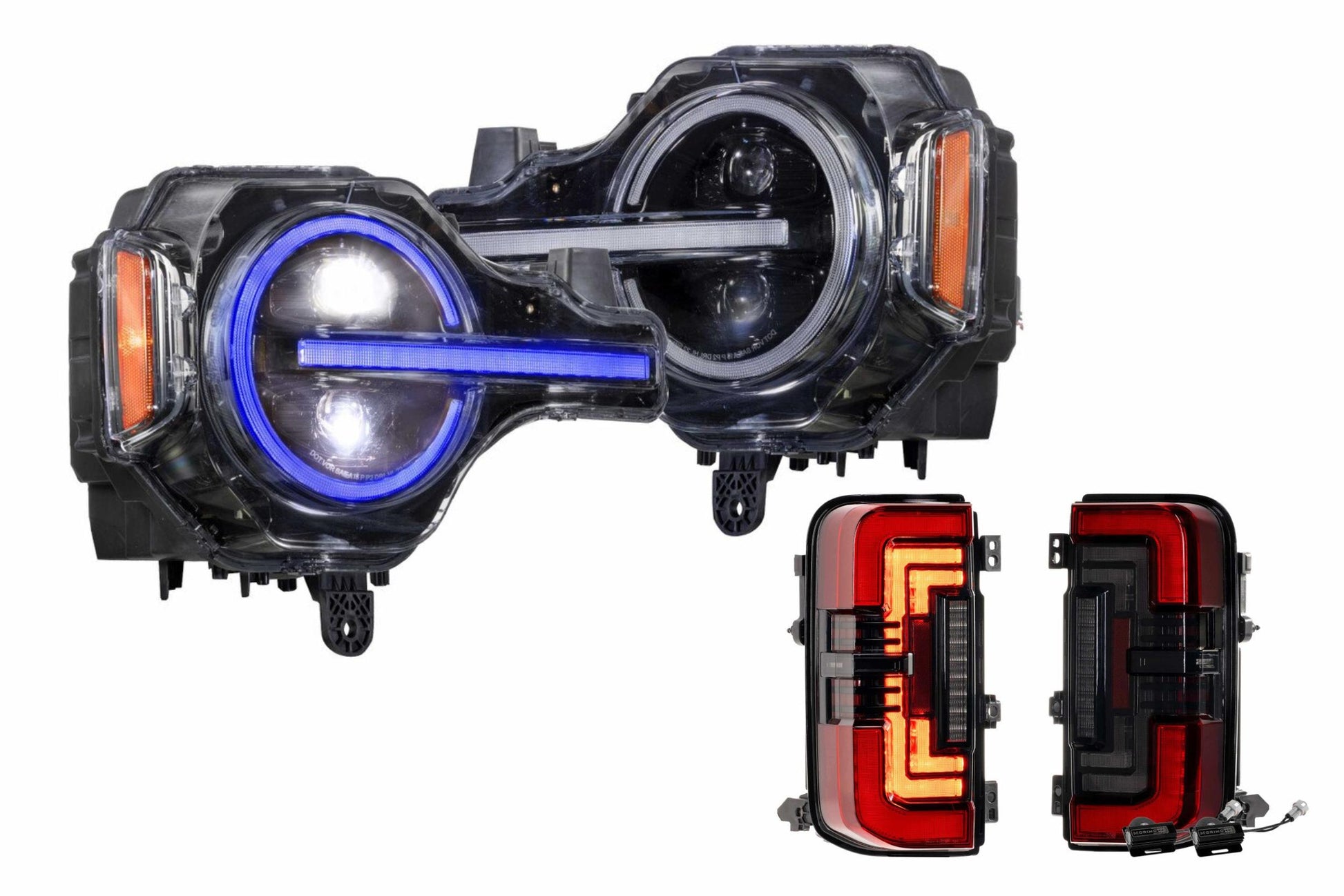 Headlights: Game Changer: Busy personalizing your new Bronco, and hit a wall in the headlight department? We know you are not the only one out there looking for solutions. Even though all trim levels of the new Bronco come standard with LED headlights, the output is awful. In fact, its so bad that headlight performance was one of the only things standing between the Bronco earning an IIHS Top Safety Pick. And two... it's extremely complicated to build a compatible aftermarket headlight for the new Bronco thanks to the digital interface with the electrical system on the truck. The XRGB from Morimoto delivers the performance you seek. The compatibility you need. And tops it off with some hard-to-resist glitz for the front end of your truck. They are the full package. RGB Daytime Running Lights: The DRL may share the same overall shape as the OEM LED headlights, but that's where the similarities end! The XRGB headlights use color changing LEDs that allow you to customize their color using a simple-to-use Bluetooth app on your Apple or Android smart phone. Despite that, they sacrifice nothing in terms of intensity or consistency! Set them to white, or even Amber just like the new Bronco Raptor, and from afar you wouldn't be able to tell the difference between the XRGB and the original headlights! Unmatched Visibility: The XRGB headlights make use of high output Bi-LED projectors that produce a meaningful amount of added intensity and road coverage compared to the stock Bronco LED headlights. Max intensity for low beam mode is 150% up over stock, and the high beam is 86% brighter than stock. that's more than twice as much output in low beam mode, and almost double in high beam! While that's impressive, the distribution of light is also more optimal too--with much more width in the beam pattern and increased high beam coverage too. Plug and Play: The installation could not get any easier. These headlights are designed to work on your Bronco without any modifications. They will plug into the factory multi-pin connector without any additional wiring at all! No error codes, no flickering, hyper-flashing, or radio interference. They can easily be removed and will not void your factory warranty. These are compatible Broncos that came standard with either version of the OEM LED headlight. Street Legality: Photometrically, the XRGB headlights do meet all DOT/FVMSS108 guidelines for on-road illumination and glare, however due to the color-changing RGB daytime running light, these lights are not DOT approved. Users should follow all local laws and regulations when using these lights, and should note that setting the daytime running light to anything except for white or amber-colored is not legal for use on public roads in North America. Tail Lights: Ford Bronco: While every biz in the aftermarket has a catalog full of products for the new Bronco, somehow no brand has yet to deliver a worthy set of tail lights for this truck... until now. The Morimoto XB LED tail lights are the category killer that every Bronco owner has been waiting for. The low profile design. The advanced, high output optics. The fact that they work with every version of the truck... the XB Low-Pro Tail lights for the Ford Bronco are the full package! Reverse Lights: Are often over-looked, but not with the Morimoto XB tail lights for the Bronco. While they come standard with powerful LED reverse lights, just wait, there's more! Morimoto's BLBB system allows you to plug n play with the optional LED Backup Boost Bar which mounts to the top of your license plate frame and provides an extra 2,700 lumens of controlled light output in reverse. Yeah, Morimoto customers like to see where they're going in reverse too! Style: A truly OEM+ design with a significantly lower profile, these look right at-home on the rear end of the Bronco. Dual rows of 3D Optics are illuminated from the rear with integrated TIR optics and serve as the brake light and turn signal. The parking light optic around the outer edge of the lights is equally impressive in the intensity department day or night. Pair that with the surrounding muscular trim, optional smoked or red outer lens, and we've easily got what is the best-looking set of low profile tail lights on the road for the Bronco. Style and Safety: All Morimoto tail lights are designed to comply with all DOT, SAE regulations for rear-facing lamps. We pride ourselves on offering stylish, high-performance and safe products for serious enthusiasts, which is why all new Morimoto products are verified by trusted third party labs for compliance and are backed with an industry-leading five-year warranty.