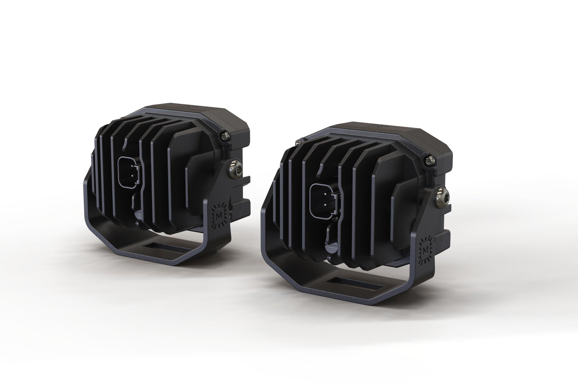 Bolt on Brighter: The Morimoto 4Banger A-Pillar LED system is the perfect solution for more light, aimed exactly where you want it. From long-range spot-lights for high speed driving to ditch lights to illuminate the side of the road, our A-Pillar kit is all about versatility. Select a set of high performance 4Banger LED pods in your choice of beam pattern, pair that with the brackets to make installation a breeze, and power it properly with our switched wire harness. Engineered Fitment: Morimoto's A-Pillar kit for the 2021+ Ford Bronco has been through numerous rounds of design, prototyping and testing directly on the truck to ensure perfect compatibility. Everything lines up with pre-existing mounting points to create an installation that is truly modification-free. Guaranteed. Yes, we agree this is a basic requirement, but you wouldn't believe the poor fitment we encountered from other well-known brands during development. It was mind blowing. Branches Beware: Each bracket is laser cut from 304 stainless steel, electroplated, then powder coated. Put simply, the side mirrors on your Bronco will rip off way before our A-Pillar kit even flexes a muscle. All Weather: The white-output version is ideal for all-around visibility. For those who desire optimal output in rain, snow, or fog--the Yellow-output version will slay in shady weather. Morimoto has opted for Phosphor-Converted Yellow LEDs that produce yellow light at the origin, which is the most effective way to penetrate through particles in the air without compromising output (Filtering white light through a yellow lens achieves the look, but no actual performance benefit in poor weather). Reliability: With power comes great responsibility. Extensive effort went into ensuring the reliability of the product. High power means high heat, which is why the 4Banger features a copper DTP (direct thermal path) PCB that maximizes heat-transfer to the radiator, which has been optimized through numerous rounds of thermal analysis. The cast aluminum shell is electroplated before powder coating to withstand flaking. The potted internals, over-molded input wiring, and main gasket are all designed according to IP69K standards for full weather resistance. Wiring & Cable Management: No sloppy wiring allowed. We have incorporated several mounting locations and cable routing clips on the stem of the bracket to direct the input wiring from your LED pods down into the engine bay. From there, you can plug n play with Morimotos switched relay wire harness for a clean and reliable install. Performance: Just like the brackets, every element of the patent-pending 4Banger LED pod light is proprietary. LucidShape was used to optimize performance around the most modern, lumen-dense LEDs from Nichia. Optics are produced according to world-class standards. Thermal dynamics have been optimized using SolidWorks. The 4Banger is available with four industry-leading beam patterns to suit every need: SAE Wide, Combo, Spot, and Flood. Flood Beam: Provides plenty of ambient light with coverage in every direction, making them the perfect solution for low speed driving or even illuminating your campgrounds. Flood optics do not project far into the distance, but are undoubtedly the weapon of choice for comfortably illuminating everything in the local space directly around your vehicle. Power Up: The Morimoto 4Banger LED Pods have been developed from the ground up to set a new standard in their segment, and the same goes for the optional wire harness. If you want the best, bingo. Not one component on the harness was overlooked for the sake of cost or simplicity. Triple sealed proprietary 4-pin relay with hanger. Proprietary over-molded inline fuse holder with 20A mini fuse. DT06-2S female outputs with dual seals. Stainless steel power and ground terminals. Proprietary M-Spec push button switch with amber-LED backlight. Street Legality: Some localities require auxiliary lights to be covered for everyday driving. To comply, the optional Blackout Covers are designed to fit all Morimoto 4Banger LED Pods, and are a friction + clip fit that installs with ease, and can be removed in seconds.