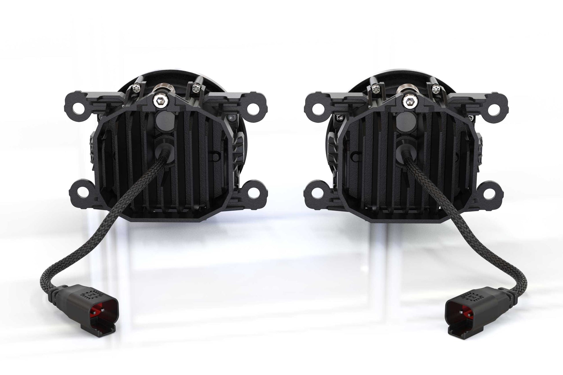 SAE Compliant Fog Lights: The Morimoto 4Banger NCS SAE Wide Beam out-performs the competition while complying with the latest SAE F regulations for a street legal fog light. The 4Banger HXB Wide Beam sets a new industry benchmark for intensity. But what's better than producing the best and brightest beam patterns that are safe for use on public roads as a fog light? The best fog-light specific mounting brackets for your Ford truck, of course. Engineered Solution: Thanks to the smaller than usual footprint of the 4Banger, we now have a powerful fog light upgrade that fits properly and looks right. Other adapter kits for more traditionally-sized LED pods stick out like a sore thumb. Not here. Morimoto engineers spent hundreds of hours hands-on in the garage during development of the 4Banger brackets alone. Repeated rounds of design, prototyping, and test fitting have spawned the most refined set of fog light brackets that a F-150 owner could ask for. Easy Setup: Everything is designed to bolt-on and plug-n-play. No modifications are required to your vehicle or its wiring to install the 4Banger off-road lights in your fogs. Each kit includes all of the necessary hardware and high-quality wiring adapters to connect with your factory fog light harness. Note, your vehicle must have stock fog lights. Fully Adjustable: These things are powerful, and while their wide beam pattern is perfect for use as a fog light, power is nothing without control. All brackets have +/- 6 degrees of vertical adjustability so that you can dial in the aim and ensure every ounce of intensity ends up on the road ahead, not in the eyes of oncoming traffic. Air Cooled: As if the style, the fitment, the adjustability aren't enough " we have incorporated duct work into each bracket to actively cool the LED pods. This improves lumen maintenance by eliminating heat-soak, which is common in other LED Pod fog light kits that have no ventilation for the heat sink. All Weather: The white-output version is ideal for all-around visibility. For those who desire optimal output in rain, snow, or fog " the Yellow-output version will slay in sour weather. For HXB Spot and Combo models, Morimoto has opted for Phosphor-Converted Yellow LEDs that produce yellow light at the origin, which is the most effective way to penetrate through particles in the air without compromising output (Filtering white light through a yellow lens achieves the look, but no actual performance benefit in poor weather). HXB Wide Beam: Offers an extremely wide beam pattern backed with powerful Osram HX Boost LEDs, making these the brightest SAE-Compliant fog light pod on the market today (80% brighter than Rigid D-Series SAE Fog and photometrics verified SAE Compliant by Calcoast ITL). The 4Banger HXB Wide beam delivers the best combination of width, intensity, and control - making it the most effective on and off-road LED fog light in the world. NCS Wide Beam: Offers the same super wide beam pattern backed with LEDs from Nichia. Their superior vertical gradient control also been verified by Calcoast ITL to meet SAE F photometric standards for on-road use as a fog light, making them highly effective on the ground and glare-free for oncoming traffic. The NCS Wide beam is 14% brighter than its next closest competitor (Rigid D-Series SAE), while consuming 28% less power (15.6W vs 21.5W).