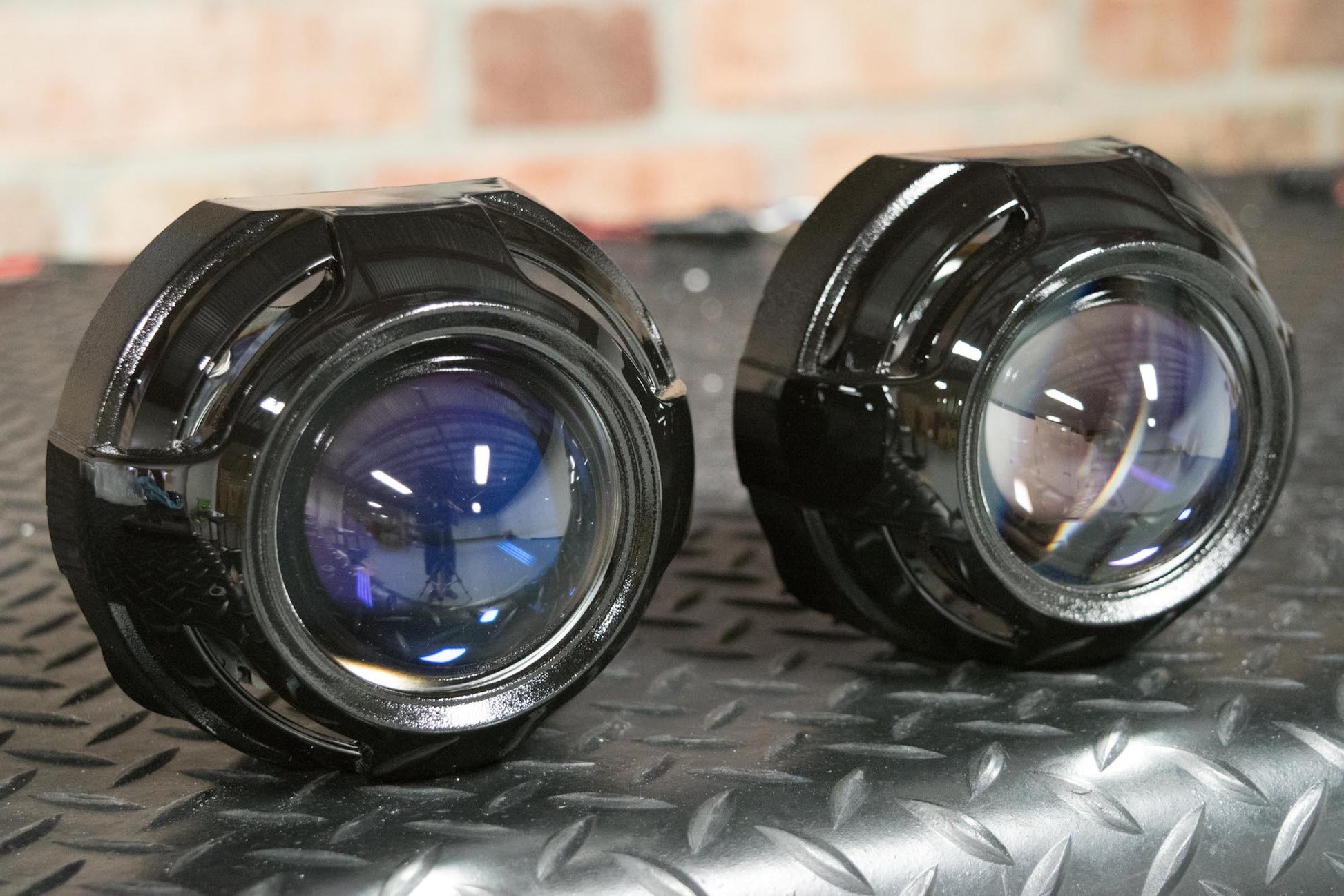Apollo 2.0: With clean lines, smooth contours, and a design that works really well with our amazingly bright 110mm LED halos. Bring the exotic design from modern Porsche headlights home with these fresh shrouds. The Apollo 2.0's have a beautiful piano black finish that is accented by textured face for a unique and attractive look. Mounting: Centric Rings are not included by default, but are highly recommended to improve ease of installation on many projectors. The Centric Rings are simple reducers that clip into the shroud to reduce the inside diameter, making them more of a "press fit" onto the lens holder of the projector. JB Weld is also recommended in order to prevent the shrouds from vibrating loose over time. LED Halos: Are a unique and effective way to further customize the look of your projector retrofit. The all new Profile Pivot (switchback) and Profile Pixel (RGB) systems are easy to mount on the front of your shrouds, are reliable, and of course awesome looking. To determine which size is best for you - check out the size-guide in the images above. These shrouds feature DRL-Vents that will glow with light if you wanted to do something a bit different and mount the halos inside. Trimming: Please note that trimming shrouds is a common task when retrofitting. Whether required to clear part of the projector, or fit within the geometry of your headlight housing; it's normal. Luckily, they're made of plastic - making that easily possible. We recommend a Dremel hand tool with Ez Lock cutting wheels to make the job easy.