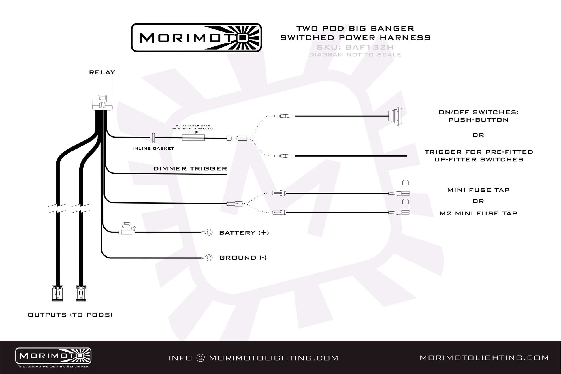 Bolt on Brighter: The Morimoto BigBanger A-Pillar LED system is the perfect solution for more light, aimed exactly where you want it. From long-range spot-lights for high speed driving to ditch lights to illuminate the side of the road, our A-Pillar kit is all about versatility. Select a set of high performance BigBanger LED pods in your choice of beam pattern, pair that with the brackets to make installation a breeze, and power it properly with our switched wire harness. Engineered Fitment: Morimoto's A-Pillar kit for the 23+ Ford Super Duty has been through numerous rounds of design, prototyping and testing directly on the truck to ensure perfect compatibility. Everything lines up with pre-existing mounting points to create an installation that is truly modification-free. Guaranteed. Yes, we agree this is a basic requirement, but you wouldn't believe the poor fitment we encountered from other well-known brands during development. It was mind blowing. Branches Beware: Each bracket is laser cut from 304 stainless steel, then powder coated. Put simply, the side mirrors on your Ram will rip off way before our A-Pillar kit even flexes a muscle. Performance: Its big. Its heavy. Its expensive, but nothing else out there can compete. Out on the trail at night, the BigBanger will run with the best brands in the business. Every element has been designed to maximize light output without compromise. LucidShape was used to optimize performance around the most modern, lumen-dense LEDs from Nichia and Osram. Thermal dynamics have been optimized using SolidWorks. With two performance tiers, two beam patterns (spot or combo) and two colors (white or yellow output); there is a BigBanger to suit the most demanding performance needs. HXB Spot Beam: The BigBanger HXB spot is a true performance powerhouse for fast paced driving in the dark--and no matter the speed, you will never outrun its ability to penetrate up to 800 meters into the distance. Producing well-over a half million Candela, there is literally nothing else on the market that can compare to the BigBanger HXB spot. To put the power in perspective, our 4Banger HXB wide beam is the brightest pod on the market in its class, its highly impressive, and its only pushing 22,000CD. HXB Combo Beam: Illuminates a clear path in every direction. The HXB Combo beam provides an unmatched blend of width and distance illumination making driving in the middle of nowhere far more comfortable. The powerful hot spot is complimented by a meaningful amount of both width and height, all perfectly tuned to produce a beam perfect for all-around visibility. NCS Spot Beam: Illuminates a narrow field, but well into the distance. The NCS Spot features a highly focused 5-degree hot spot that's surrounded by a 14H x 4C degree flood beam, making it the perfect weapon for long range visibility. While not quite as powerful as the BigBanger HXB Spot, the NCS model easily keeps pace with the best in the business and offers a lot of 'Banger for the buck. NCS Combo Beam: Offering the same great beam pattern as the top-of-the-line HXB model, the NCS Combo will effectively illuminate the path ahead in every direction with a meaningful amount of intensity throughout. The Combo optics produce a strong hotspot, width, and vertical flood into a beam pattern that's highly useful for all around visibility. Powered with modern LEDs from Nichia, intensity wont disappoint either. Amber Back Light: Comes standard on all BigBanger Pods. While amber backlight does not produce any forward illumination, the daytime-setting is so bright that they will dim by 90% at night to avoid creating glare for oncoming traffic. The dual-intensity control for the backlight is integrated into our optional BigBanger-specific wire harness, which has been designed to control all modes on two pods. Power Up: The Morimoto BigBanger LED Pods have been developed from the ground up to set a new standard in their segment, and the same goes for the optional wire harnesses. This harness is designed to control the pods and their dual intensity backlight with ease. Not one component was overlooked for the sake of cost or simplicity. Triple sealed proprietary 4-pin relay with hanger. Proprietary over-molded inline fuse holder with 20A mini fuse. DT06-4S female outputs with dual seals. Stainless steel power and ground terminals. Proprietary M-Spec push button switch with Amber-LED backlight. All Weather: The white-output version is ideal for all-around visibility. For those who desire optimal output in rain, snow, or fog--the Yellow-output version will slay in shady weather. Morimoto has opted for Phosphor-converted Yellow LEDs that produce yellow light at the origin, which is the most effective way to penetrate through particles in the air without compromising output (Filtering white light through a yellow lens achieves the look, but no actual performance benefit in poor weather) Reliability: With power comes great responsibility. Extensive effort went into ensuring the reliability of the BigBangers. High power means high heat, which is why the platform is built around a copper DTP (direct thermal path) PCB that maximizes heat-transfer to the radiator, which has been optimized through numerous rounds of thermal analysis. The cast aluminum shell is electroplated before powder coating to withstand flaking. The gasket system, integrated DT power connection, and breather valves all designed according to IP69K standards for full weather resistance.