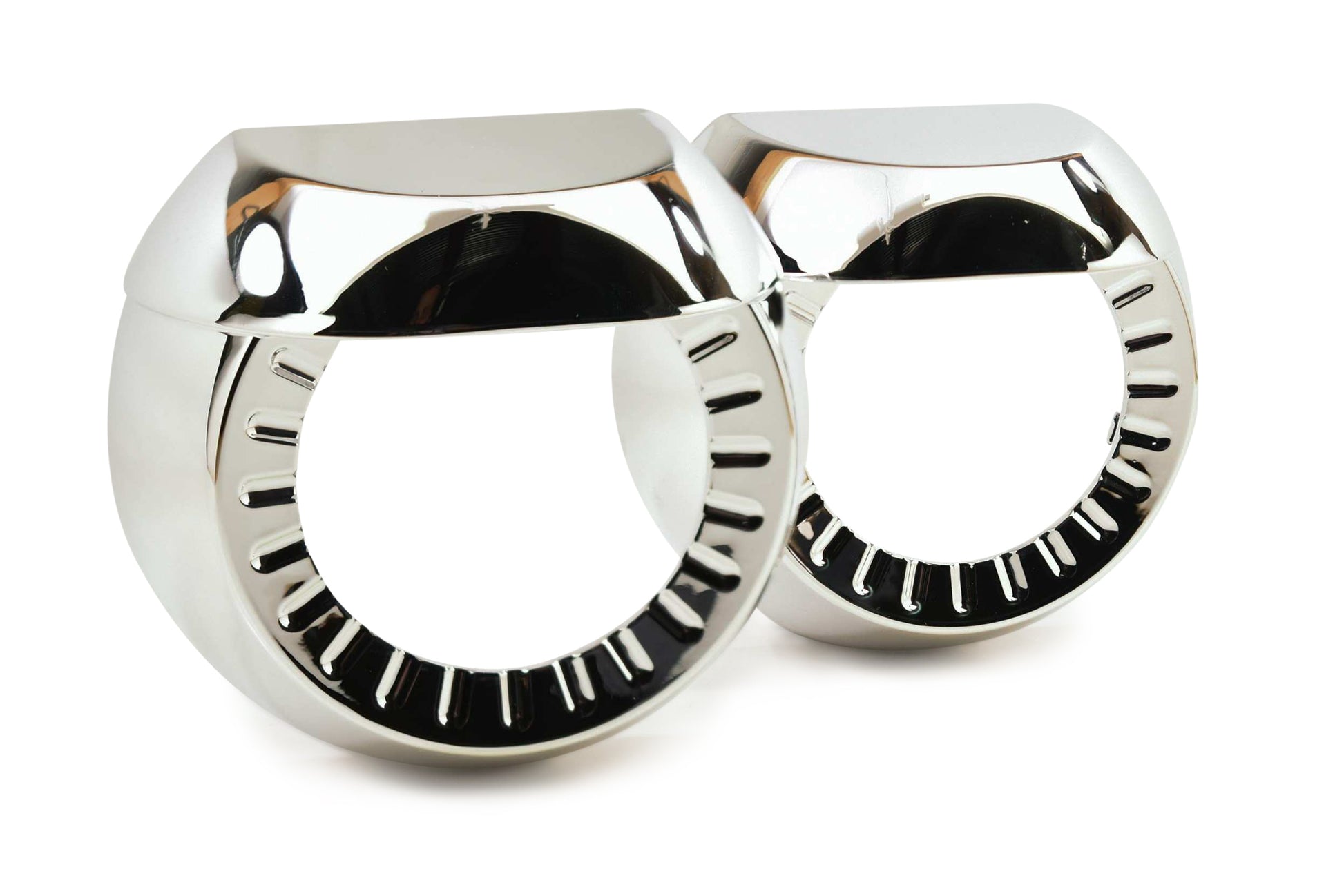 GTi-R 2.0: The Mk6 GTI brought us many treats, this unique "eyelid" shroud design included! Want OEM+? Here you are! In Comparison: Don't make the mistake of thinking all shrouds are created equal. Even though less expensive alternatives may be available elsewhere: Morimoto shrouds are made from the highest quality plastic and have by far the most durable metalized chrome finishes. The cheapo's out there are flimsy enough to deform from the heat just a 35W HID bulb, and their chrome finish easily flakes off. A or B: At our shop, we're also meticulous with quality control. If a shroud has a minor factory defect; we sell it at a discount as a "B stock" unit - which is perfect for budget retrofits or when painting them is part of the plans. If you won't settle for anything less than perfect and plan to leave them chrome; go for the "A Stock" Shrouds. Mounting: Centric Rings are not included by default, but are highly recommended to improve ease of installation on many projectors. The Centric Rings are simple reducers that clip into the shroud to reduce the inside diameter, making them more of a "press fit" onto the lens holder of the projector. JB Quik Weld is also recommended in order to prevent the shrouds from vibrating loose over time. Trimming: Please note that trimming shrouds is a common task when retrofitting. Whether required to clear part of the projector, or fit within the geometry of your headlight housing; it's normal. Luckily, they're made of plastic - making that easily possible. We recommend a Dremel hand tool with EZ Lock cutting wheels to make the job easy.