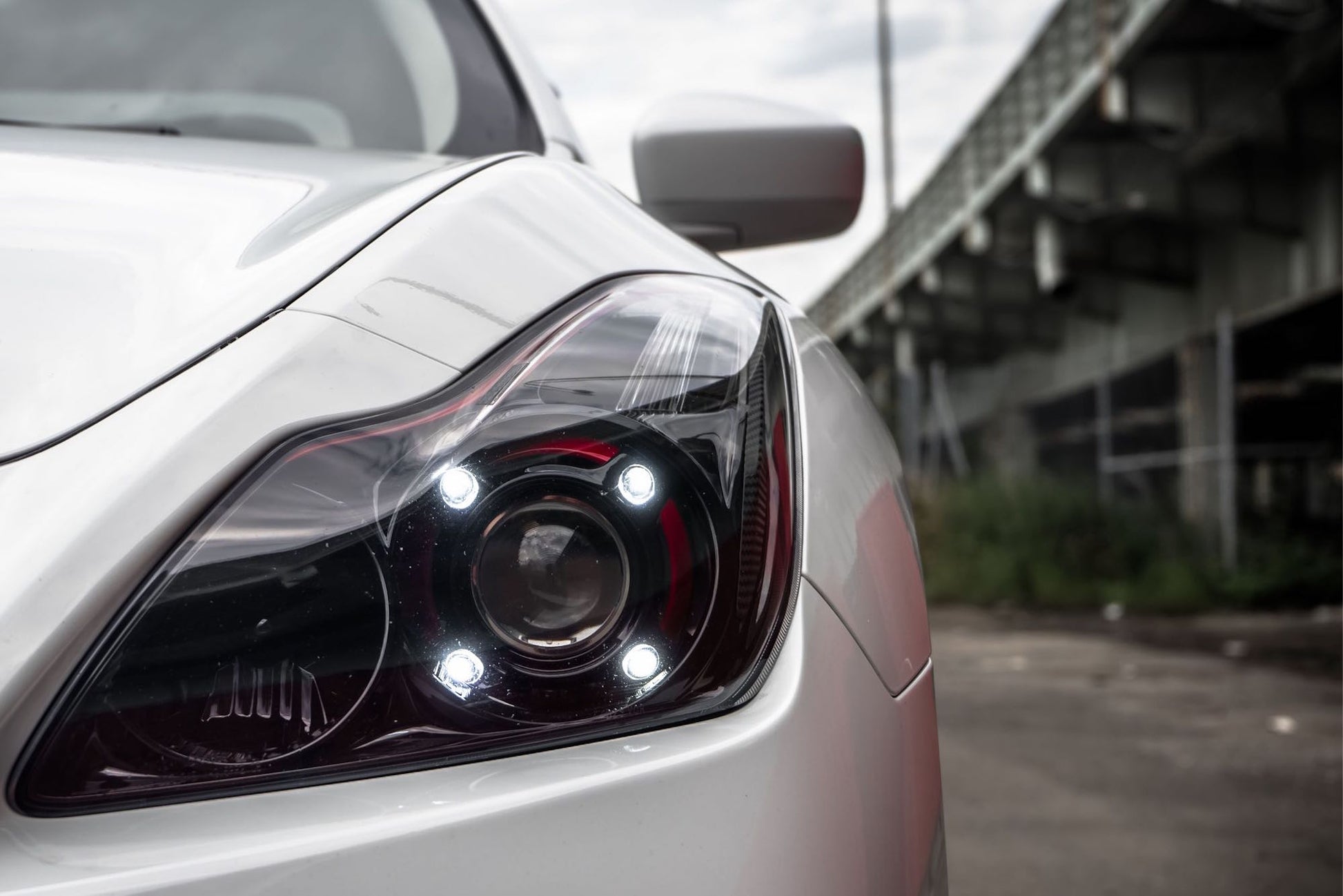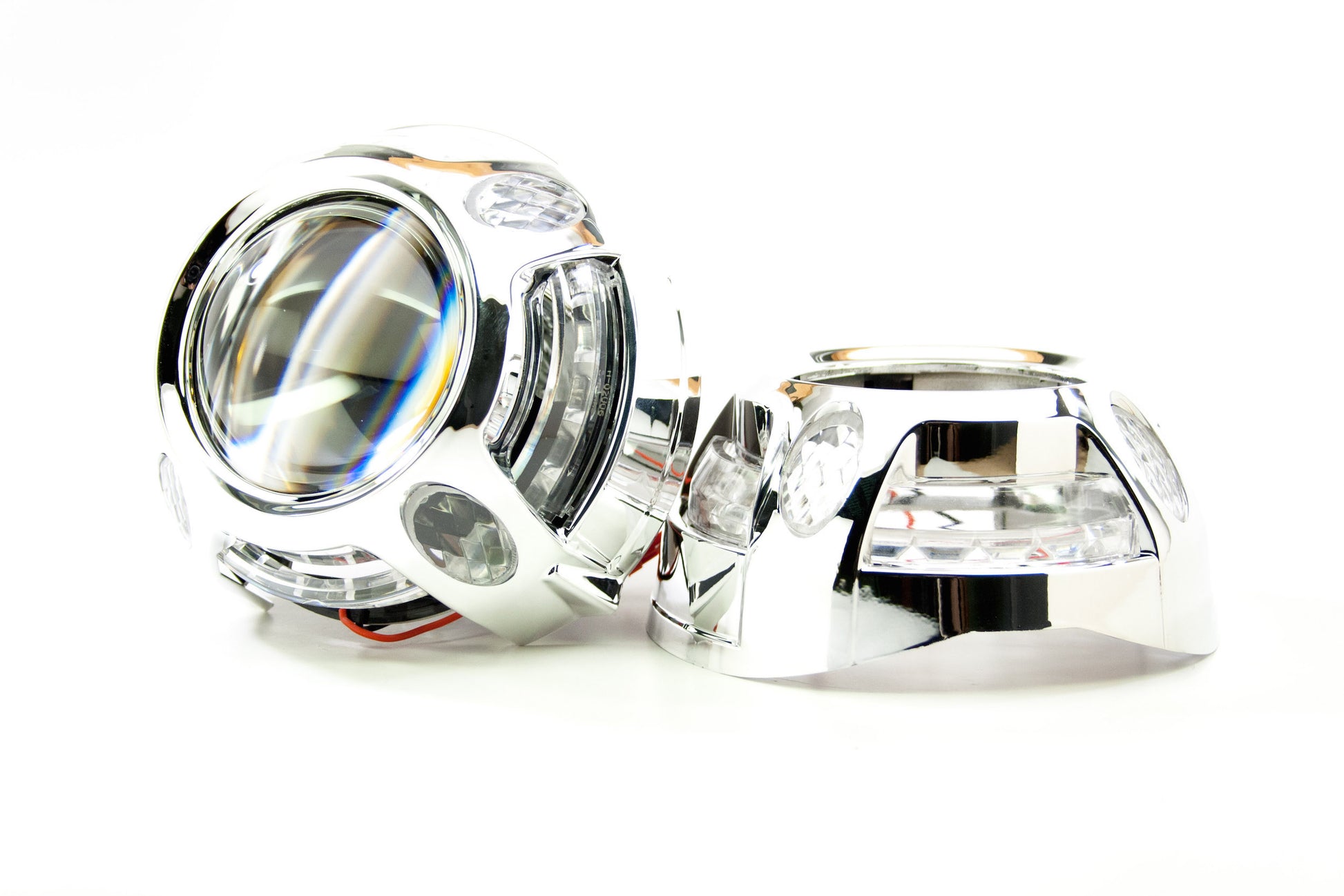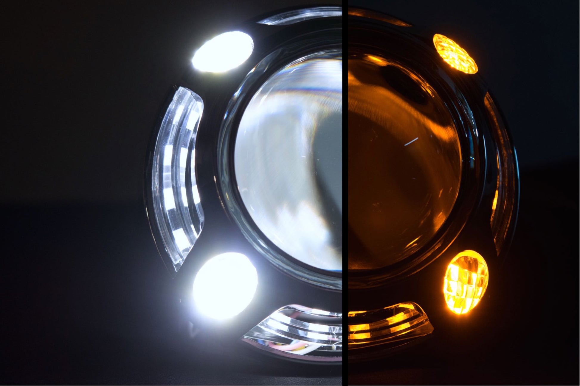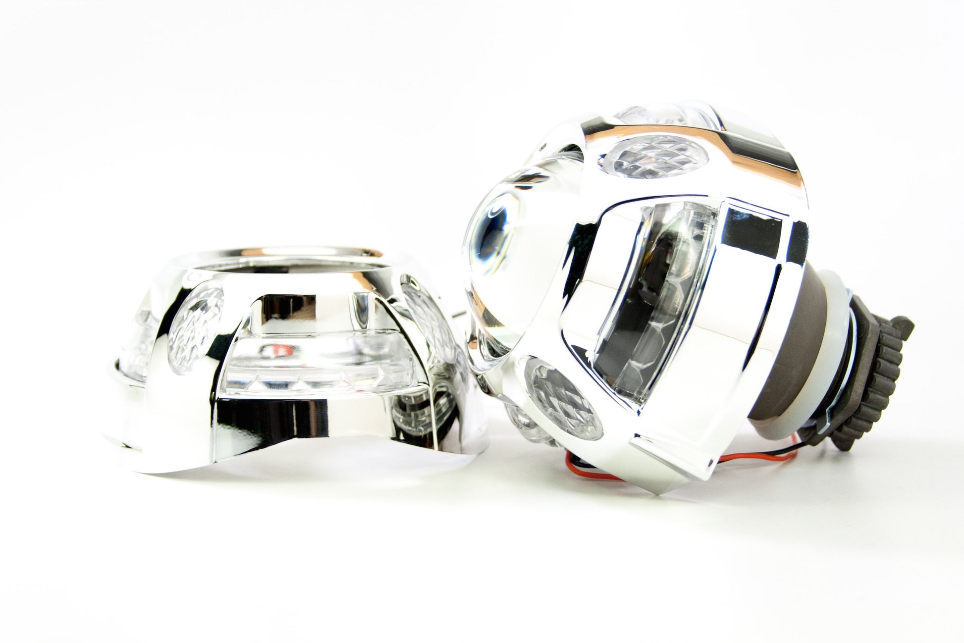 Panamera-LED: takes the original Panamera shrouds to an all new level of OEM plus! With a Type II White/Amber Switchback LED circuit built into the backside of the shroud that illuminates the four lenses on each corner, these are undoubtedly the most baller status shrouds we've ever offered. With excellent coverage for most projectors too, they're also very functional. In Comparison: Don't make the mistake of thinking all shrouds are created equal. Even though less expensive alternatives may be available elsewhere: Morimoto Panamera LED's use an XSB Switchback driver and high quality LED PCB in place of the cheap crap found in the generics. Their shrouds are made from the highest quality plastic and have by far the most durable metalized chrome finishes. The cheapo's out there are flimsy enough to deform from the heat just a 35W HID bulb, and their chrome finish easily flakes off. A or B: At our shop, we're also meticulous with quality control. If a shroud has a minor factory defect; we sell it at a discount as a "B stock" unit - which is perfect for budget retrofits or when painting them is part of the plans. If you won't settle for anything less than perfect and plan to leave them chrome; go for the "A Stock" Shrouds. Mounting: Centric Rings are not included by default, but are highly recommended to improve ease of installation on many projectors. The Centric Rings are simple reducers that clip into the shroud to reduce the inside diameter, making them more of a "press fit" onto the lens holder of the projector. JB Quik Weld is also recommended in order to prevent the shrouds from vibrating loose over time. LED Halos: Are a unique and effective way to further customize the look of your projector retrofit. The Profile Pivot (switchback) and Profile Pixel (RGB) systems are easy to mount on the front of your shrouds, are reliable, and of course awesome looking. To determine which size is best for you - check out the size-guide in the images above. Trimming: Please note that trimming shrouds is a common task when retrofitting. Whether required to clear part of the projector, or fit within the geometry of your headlight housing; it's normal. Luckily, they're made of plastic - making that easily possible. We recommend a Dremel hand tool with EZ Lock cutting wheels to make the job easy.
