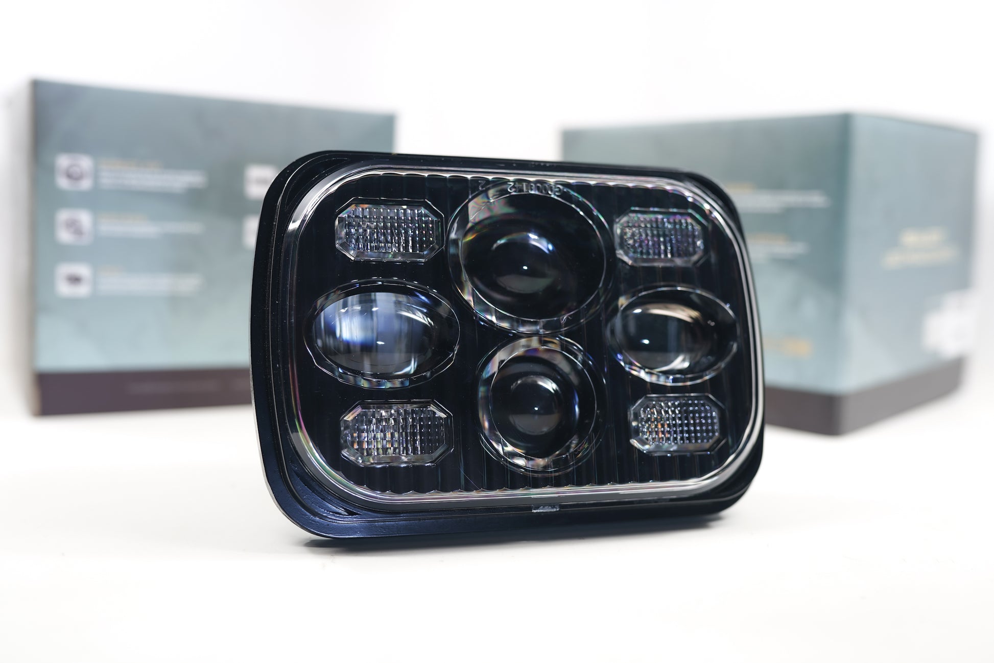 Just when you think: You've done your research and come across every last option in the 5x7" Sealed Beam LED market, these should catch your attention. While it's true there's only so many ways you can package a set of low and high beam LED-based optics into a small rectangular headlight; Morimoto's Sealed5 pulls it off in the most functional and attractive setup possible Proprietary: The Morimoto Sealed5 is all-new, all-original from the ground up. Until now, there were basically three distinct products on the market. You have the high-end J.W. Speaker 8900 at the top of the totem poll. Then there are the cheap J.W. Speaker knock-offs, re-branded by companies A,B, and C--..and last but not least you have the options like the Truck-Lite reflector-based 5x7" lights... again, re-branded by company X,Y, and Z. The Morimoto Sealed5 LED headlights are unlike anything else on the market. Output: In low beam mode, Nichia NCSW170C Series LED's paired with Morimoto's advanced Kuria Optic projector lens array efficiently distributes 2400 lumens on the road in a properly LHD-stepped beam pattern. In high beam mode, the Sealed5 illuminates an extra set of optics, upping the overall output to 4300 mosquito-melting lumens there. DRL / Switchback: The quad-optic setup has three functions: 1) High-intensity white daytime running light. 2) Low-intensity white parking light, and 3) High-intensity amber turn signal. The switchback setup on the turn signal will automatically interrupt the white DRL, flash, and then return to white once the signal stops. The 3-wire DRL/Signal input makes setup easy. If you don't care for the DRL or turn signals, they do not have to be wired in. Quality: No expense was spared when designing the Sealed5. The heart of the headlight is powered with high quality LEDs from Nichia-Japan and Philips-Lumileds. These aren't cheap emitters to begin with. Your classic car has already withstood the test of time and the UV-coated polycarbonate lens will take a another couple decades worth of abuse without fading. You can feel the precision in the heavy-duty die-cast housings that double as a heat-sink. A special PWM LED driver resides inside of the headlight to keep the LED's running at their peak intensity, even during prolonged periods of use. 5x7" Standard: Designed to replace all 5x7" rectangular headlights, these are cross compatible with other sizes commonly known as H5054, H6054, or HP6054. The Sealed5 offers full low and high beam functionality. They come standard with H4 3-pin male inputs and should be plug and play on most classic cars / trucks.
