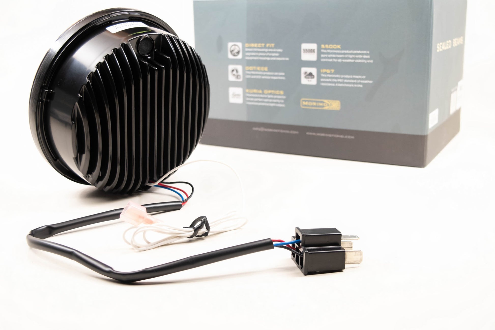 Just when you think: You've done your research and come across every last option in the 5.75 round sealed Beam LED market, these should catch your attention. While it's true there's only so many ways you can package a set of low and high beam LED-based optics into a small round headlight; Morimoto's Sealed6 pulls it off in the most functional and elegant setup possible. Proprietary: The Morimoto Sealed6 is all-new, all-original from the ground up. Until now, there were basically three distinct products on the market. You have the high-end J.W. Speaker 8630 at the top of the price spectrum. Then there are the cheap J.W. Speaker knock-offs, re-branded by companies A,B, and C...and last but not least you have the options like the Truck-Lite reflector-based 5.75" lights...again, re-branded by company X,Y, and Z. The Morimoto Sealed6 LED headlights are unlike anything else on the market. Output: In low beam mode, Nichia NCSW170C Series LED's paired with Morimoto's advanced Kuria Optic projector lens array efficiently distributes 2400 lumens on the road in a properly LHD-stepped beam pattern. In high beam mode, the Sealed6 illuminates an extra set of optics, upping the overall output to 4300 mosquito-melting lumens there. DRL / Switchback: The dual light-pipe DRL setup has both a high-intensity white daytime running light and a low-intensity white parking light. The 2-wire DRL/Signal input makes setup easy. If you don't care for the DRL function though, they do not have to be wired in. Quality: No expense was spared when designing the Sealed6. The heart of the headlight is powered with high quality LEDs from Nichia-Japan and Philips-Lumileds. These aren't cheap emitters to begin with. Your classic car has already withstood the test of time and the UV-coated polycarbonate lens will take another couple decades worth of abuse without fading. You can feel the precision in the heavy-duty die-cast housings that double as a heat-sink. A special PWM LED driver resides inside of the headlight to keep the LED's running at their peak intensity, even during prolonged periods of use. 5.75" Standard: Designed to replace all 5.75" round headlights, these are cross compatible with other sizes commonly known as H5001 or H5006. The Sealed6 offers full low and high beam functionality. They come standard with H4 3-pin male inputs and should be plug and play on most classic cars / trucks.