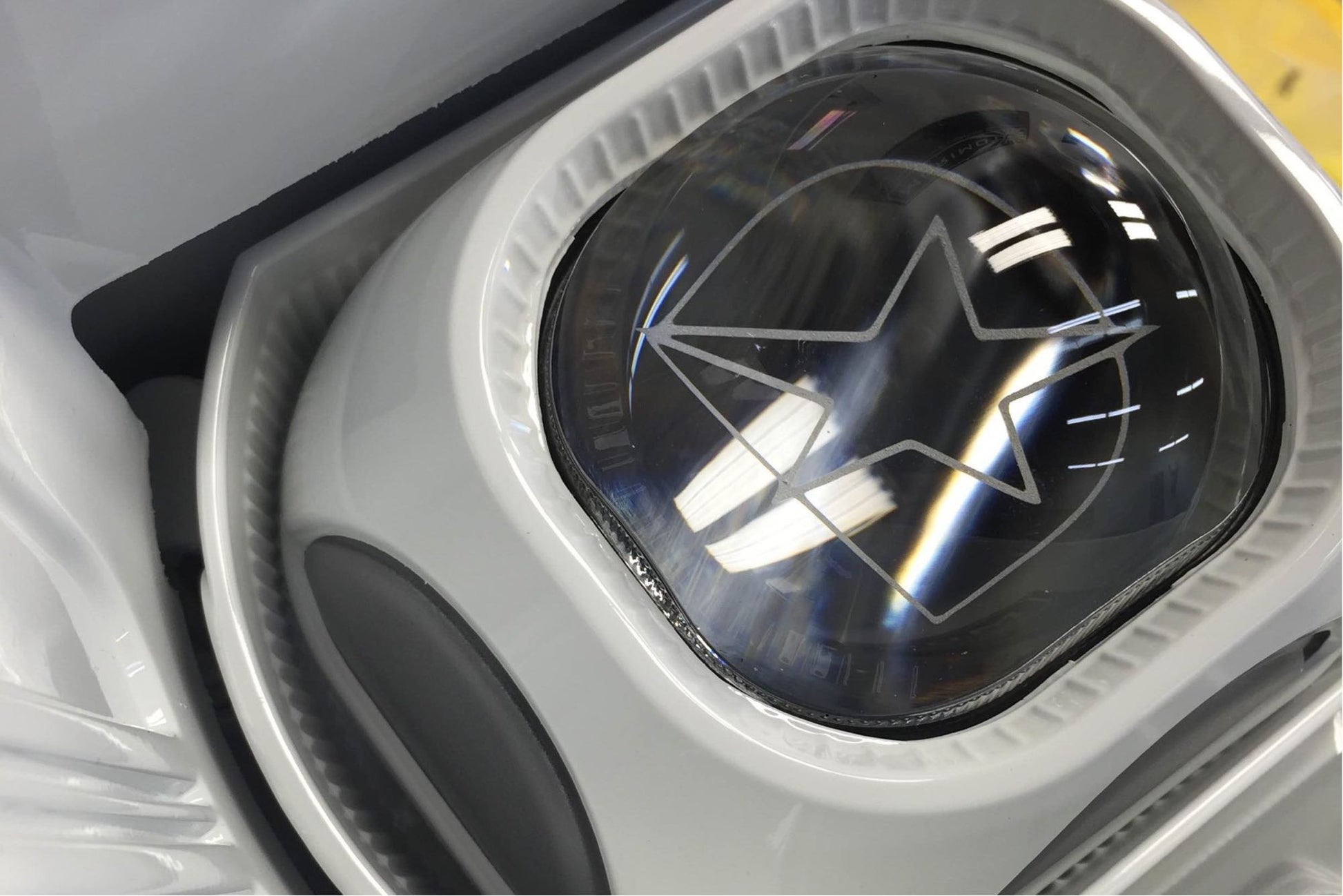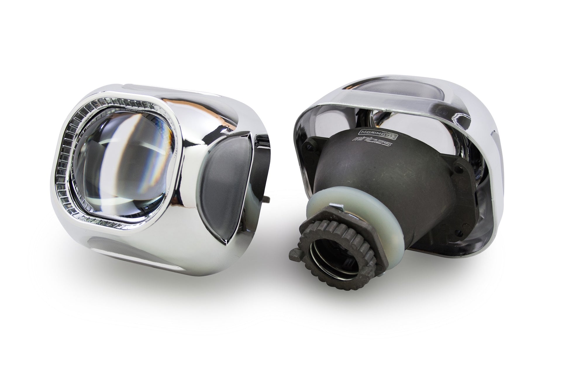PanaSquare: The Panamera is one of the most popular round shrouds, but now the PanaSquare is available to fit Square Lens Retrofits! Using symmetrical semi-circular acrylic accents on each face of the shroud, the PanaSquare is one of the coolest and cleanest looking shrouds for their Square Lens friends. NOTE: The PanaSquare fits only the Morimoto Mini D2S 4.0 or 5.0 with the "Square Lens" option. In Comparison: Don't make the mistake of thinking all shrouds are created equal. Even though less expensive alternatives may be available elsewhere: our shrouds are made from the highest quality plastic and have by far the most durable metalized chrome finishes. The cheapo's out there are flimsy enough to deform from the heat just a 35W HID bulb, and their chrome finish easily flakes off. Mounting: JB Quik Weld or another fast-curing epoxy is recommended in order to prevent the shrouds from vibrating loose over time. Trimming: Please note that trimming shrouds is a common task when retrofitting. Whether required to clear part of the projector, or fit within the geometry of your headlight housing; it's normal. Luckily, they're made of plastic - making that easily possible. We recommend a Dremel hand tool with EZ Lock cutting wheels to make the job easy.