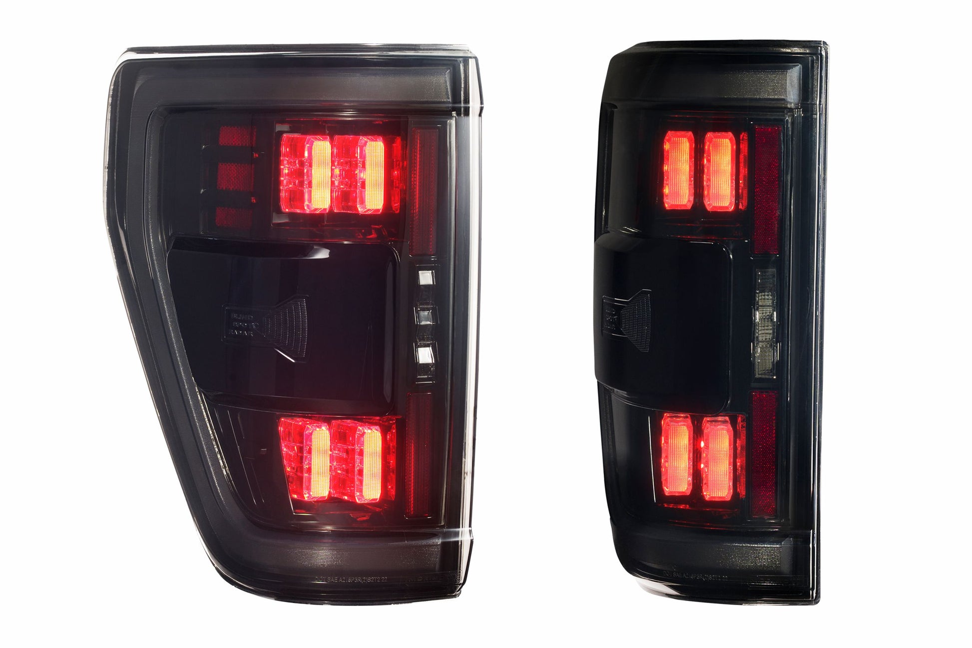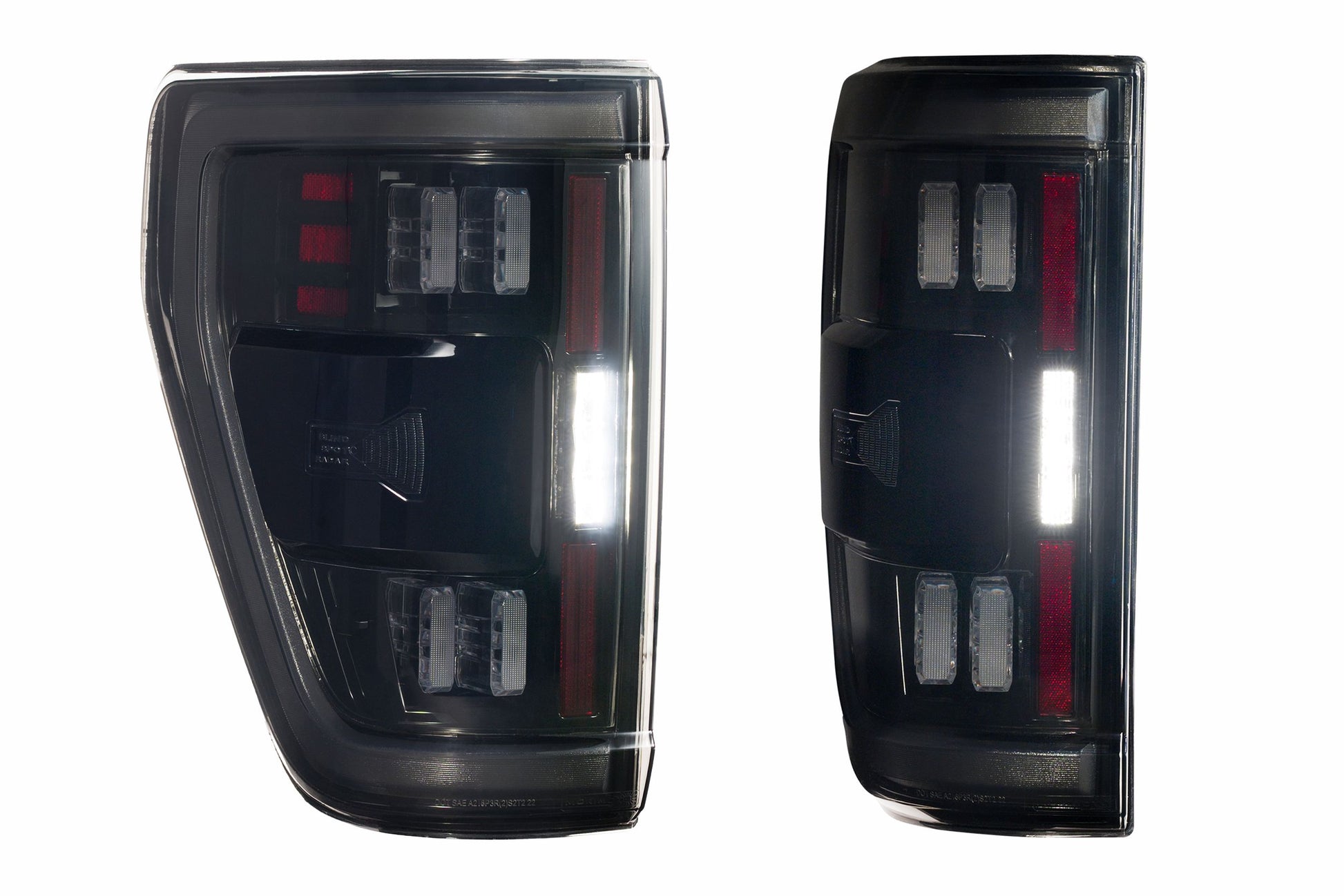 New Ford F-150: While every biz in the aftermarket scrambles to turn out products for the latest and greatest F-150, somehow no brand has yet to deliver a worthy set of tail lights for this truck... until now. The Morimoto XB LED tail lights are the category killer that every new F-150 owner has been waiting for, and they work with every version of the truck from the base model, up to the Raptor! Ultimate Flex: Compatible with all versions of the 2021-2023 Ford F-150, they will fit all trucks with OE halogen, OE halogen with BLIS, or the OE LED with BLIS, or the Raptor style tail lights... Yes you read that correctly. Even if your truck does not have the BLIS system, the XB tails will still fit, work properly, and add that high-end vibe to your truck. They will not however magically enable the BLIS function. Everything has been thoughtfully designed to be completely plug n play with the factory wiring harness and radar system, use all of the stock mounting points, and should not take more than 30 minutes to install both taillights. Reverse Lights: Are often over-looked, but not with the Morimoto XB tail lights for the new F-150. While they come standard with powerful LED reverse lights, just wait, there's more! Morimoto's BLBB system allows you to plug n play with the optional LED Backup Boost Bar which mounts to the top of your license plate frame and provides an extra 2,700 lumens of controlled light output in reverse. Yeah, Morimoto customers like to see where they're going in reverse too! Style: Inspired by the design of modern OEM LED tail lights from Ford and the 3D sidemarkers on the 3rd Gen Raptor, these look right at-home on the rear end of the new F-150. Two clusters of 3D Optics are illuminated from the rear with integrated TIR optics, and serve as the brake light and turn signal. The parking light optic around the outer edge of the lights mirrors the OEM LED setup, and is equally impressive in the intensity department day or night. Pair that with the surrounding muscular trim, optional smoked or red outer lens, and we've easily got what is the best-looking set tail lights on the road for the 21-23 F-150 trucks! Style and Safety: All Morimoto tail lights are designed to comply with all DOT, SAE regulations for rear-facing lamps. We pride ourselves on offering stylish, high-performance and safe products for serious enthusiasts, which is why all new Morimoto products are verified by trusted third party labs for compliance and are backed with an industry-leading five year warranty.