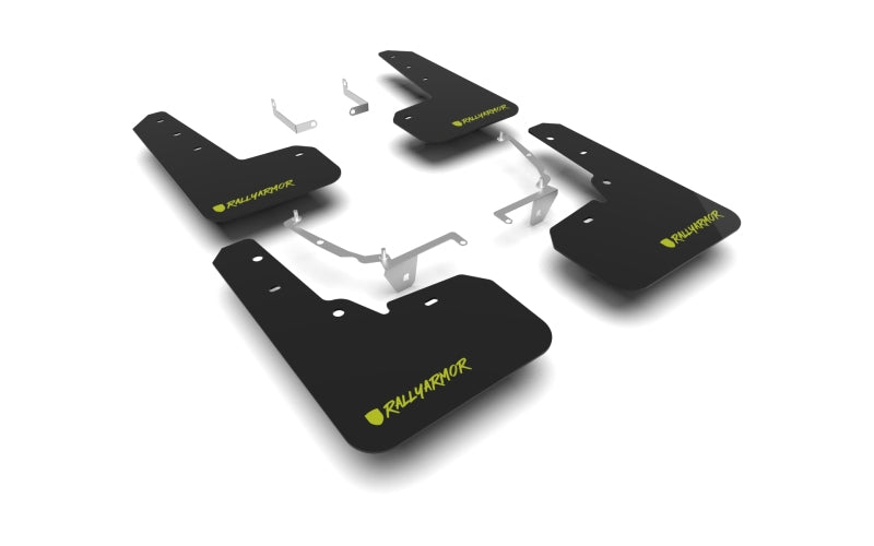 Rally Armor 13-17 Subaru Crosstrek XV Black UR Mud Flap w/ Green Logo (Altered Font)