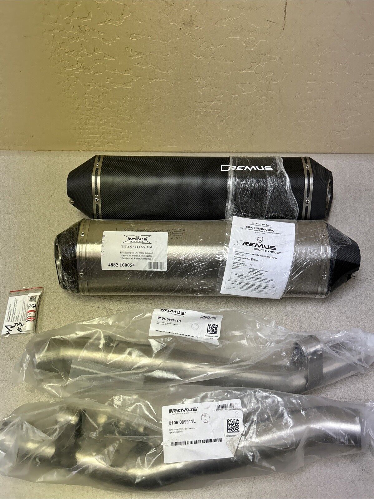 Remus 2021+ BMW R 18 (Euro 5) Black Slip On - Left & Right Side w/Slash Cut V1 End Caps - Sliver