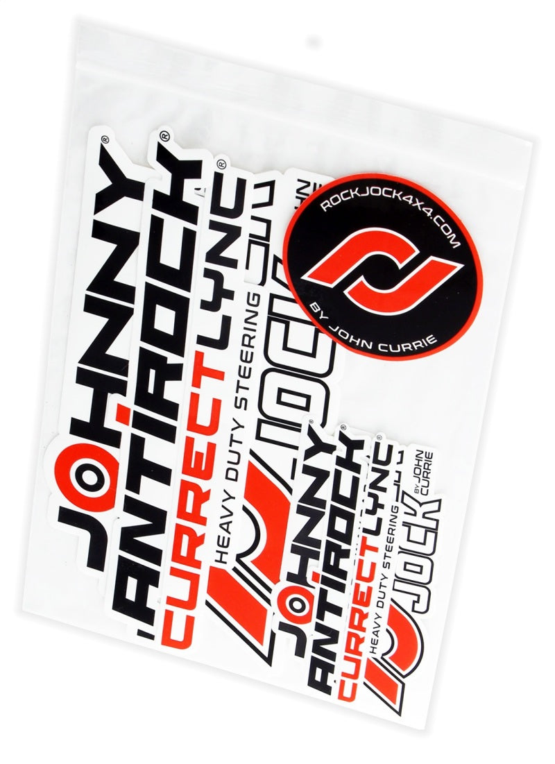 RockJock White Sticker Packs provide 4 1/2 in. and 8 in. wide versions of all of our brand logos, as well as one RockJock 2 7/8 in. round logo sticker. High quality, UV tested stickers feature a white background, with the exception of the round sticker).
