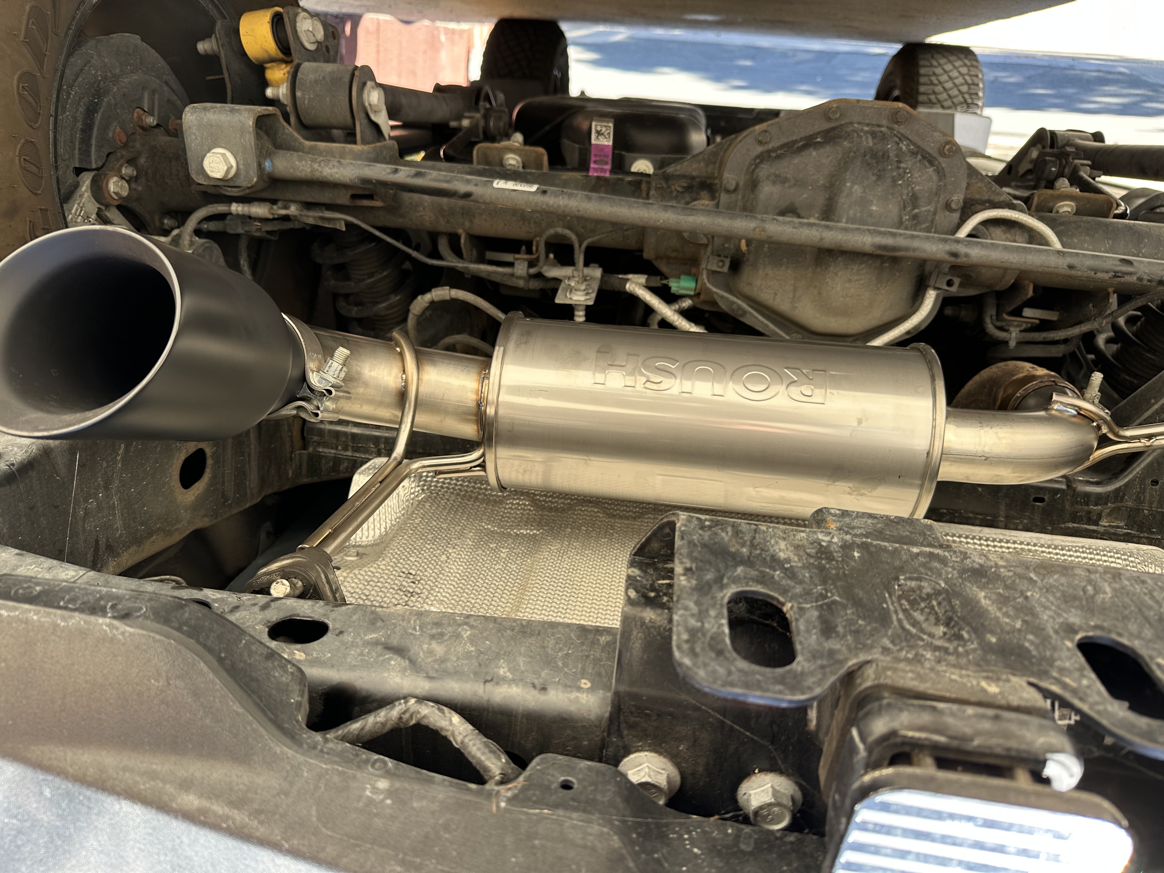 Utilizing the existing exhaust hangers and mounting locations, this exhaust system is easy to install and adds an aggressive exhaust tone when you are cruising down the highway or the trails. Complete with a stainless steel Roush muffler and a removable black-coated tip, this exhaust system is ready for action. The removable exhaust tip is etched with the R logo and allows for an even greater departure angle when taking your Bronco off-road.