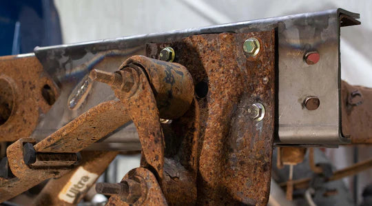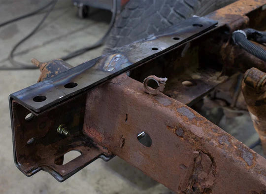 Repair rear frame rust on your GM 1500 short bed truck with the Rust Buster RB7319L left-side rear frame repair kit. Fits 1999-2006 Chevy Silverado and GMC Sierra 1500 short bed models equipped with flat-style rear reinforcement. Caps the frame rail between the rear shock crossmember and rear frame crossmember and measures 18.58 inches long. Constructed from heavy-duty 7-gauge steel, requires welding, ships with a protective oil coating, and is backed by a lifetime warranty.