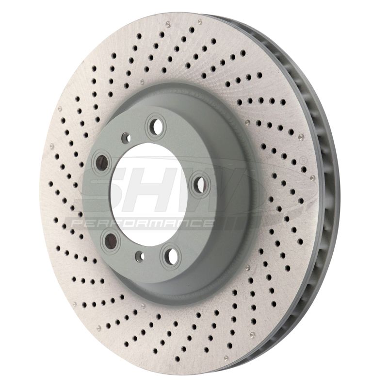 SHW 07-13 Porsche 911 Turbo 3.8L w/o Ceramic Brakes Left Front Drilled-Dimpled MB Brake Rotor