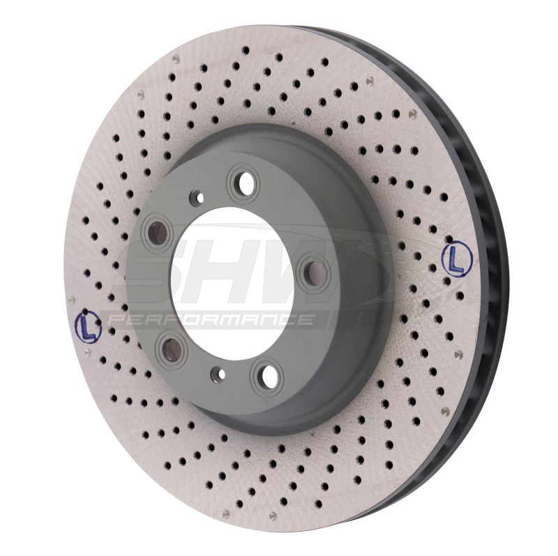 SHW 2012 Porsche 911 Carrera 4 GTS 3.8L w/o Ceramic Brakes Left Front Drilled-Dimpled MB Brake Rotor