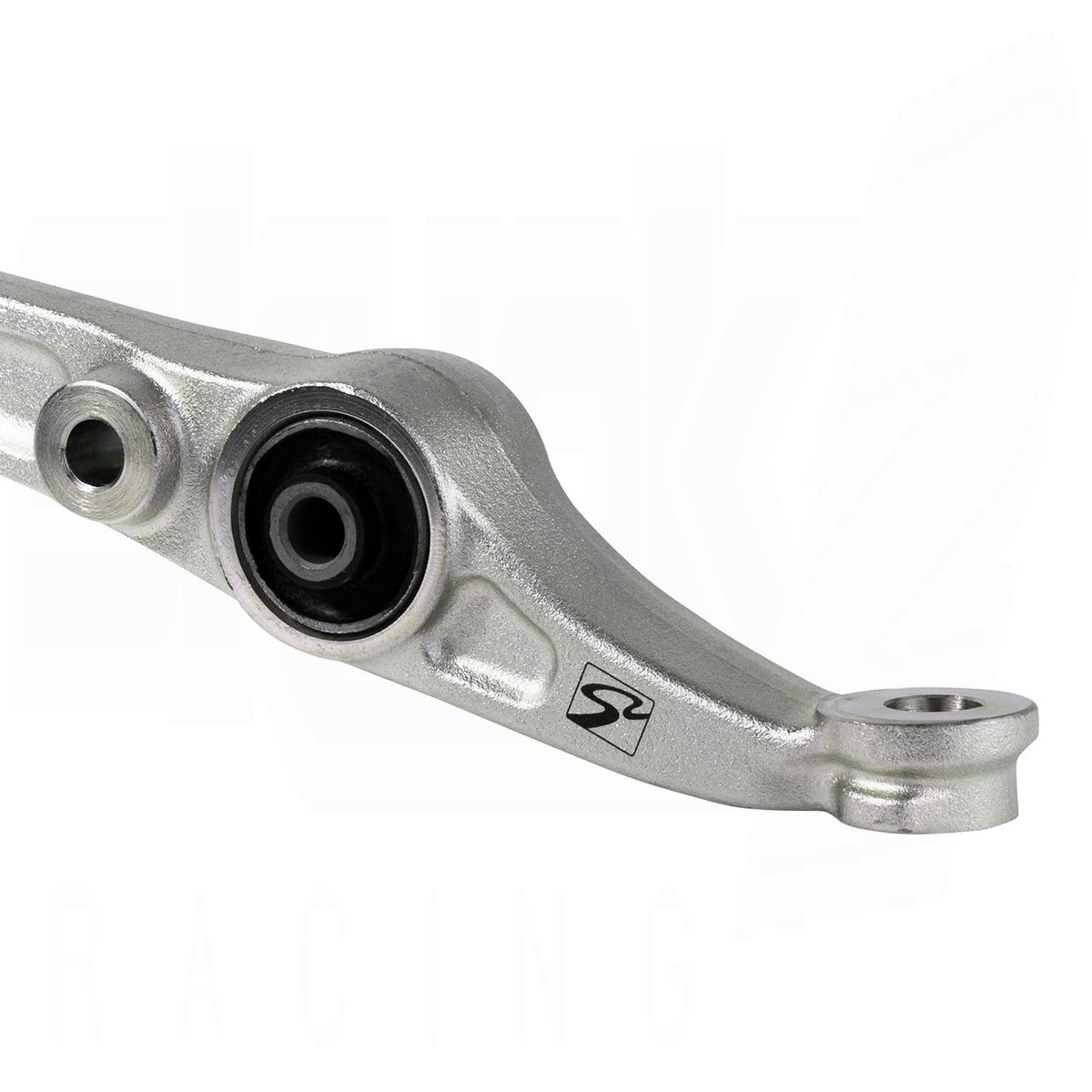 The Skunk2 Front Lower Control Arm Set is a high-performance replacement designed for the 1992–1995 Honda Civic and 1994–2001 Acura Integra. Precision-engineered to outperform factory components, these control arms are forged from high-strength alloy steel and finished with corrosion-resistant zinc plating for exceptional durability. Featuring stiffer rubber compensator bushings that are 15% harder than OEM, they improve handling, steering response, and overall suspension stability.