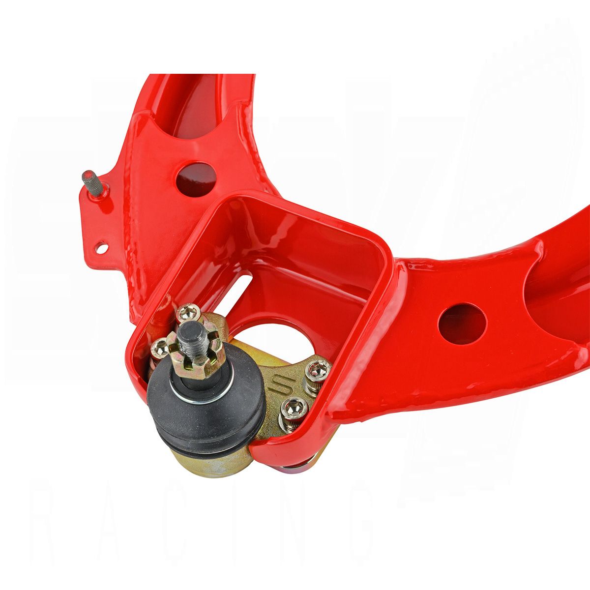 Each kit features 25mm high-misalignment Pro Series ball joints, engineered for extreme durability and consistent performance under aggressive driving conditions. The low-profile top design ensures proper shock tower clearance, while OEM-style hard rubber compliance bushings maintain ride comfort and minimize noise. Skunk2’s signature non-slip upper clamping plate and bottom adjusting bolts make fine-tuning simple and accurate.