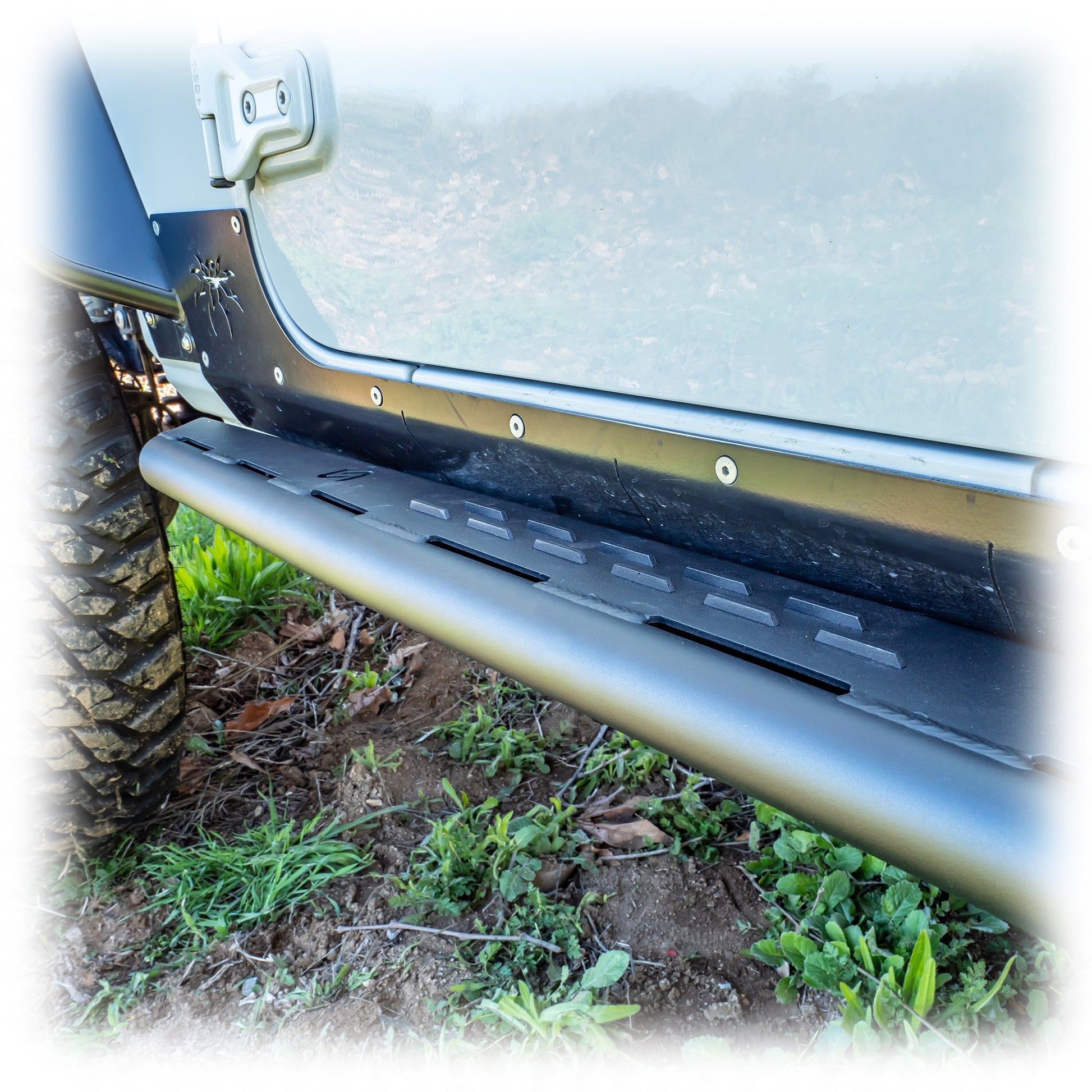 Bolts directly to the JT’s frame for uncompromising strength. Unlike typical body-mount sliders, this system resists flex under load and supports full vehicle weight on hard hits.